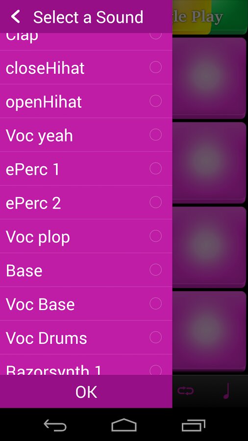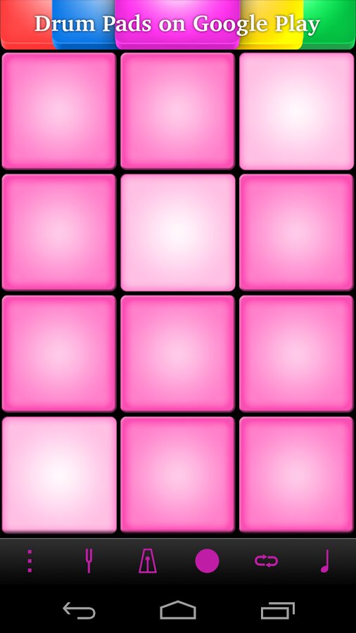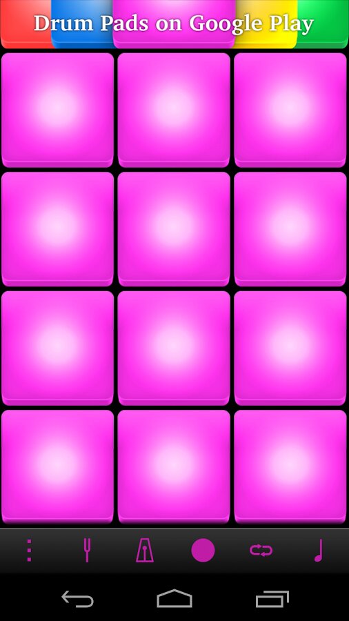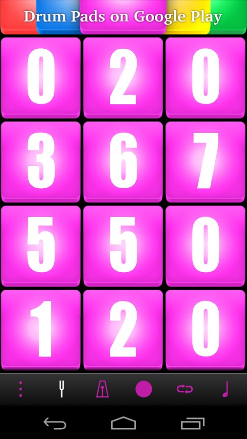 Очередное приложение из серии Drum Pads для любителей музыки в стиле electro. Приложение представлено двенадцатью клавишами с различными звуками.Из первых четырех клавиш можно делать так называемый сепмл трека, с помощью остальных восьми вставлять биты. Всем советую!!!