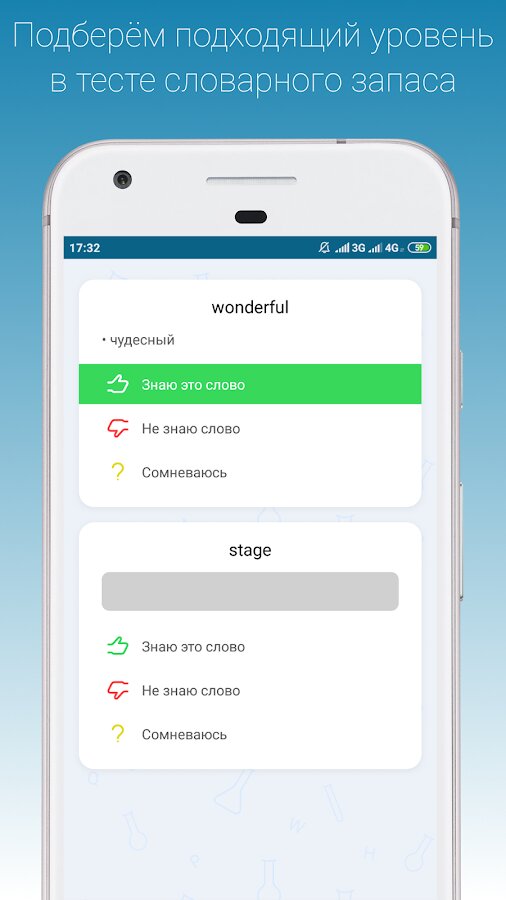 - Тест словарного запаса поможет оценить твой уровень знаний английского языка и подобрать подходящую сложность слов;