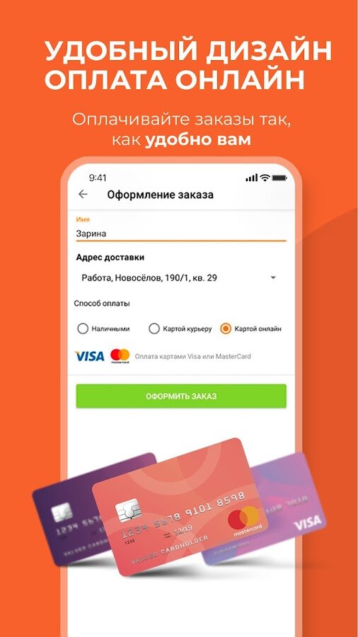 - Оплата заказа онлайн внутри приложения