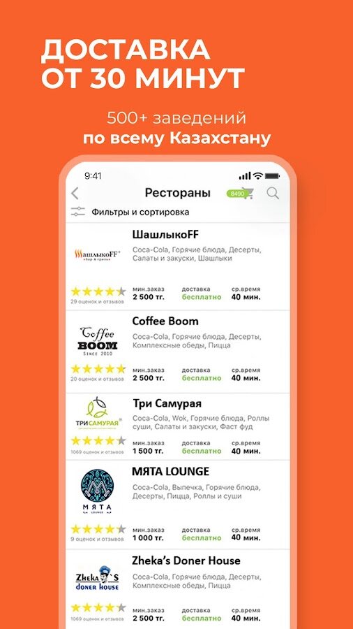 Мы работаем, чтобы помочь ресторанам получать больше заказов, курьерам зарабатывать дополнительные деньги, а клиентам иметь доступ к меню сотен заведений по всему Казахстану.