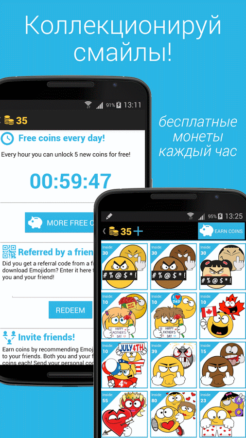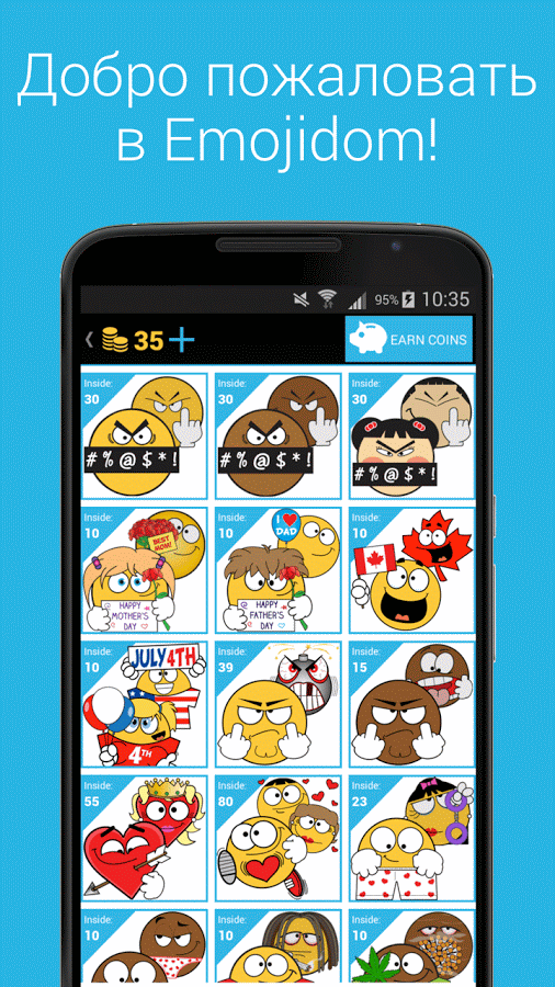 - В отличие от смайлов на iPhone, Emojidom смайлы всегда видны получателю, даже если вы пересылаете их с телефона Android на iPhone, компьютер и т.д.