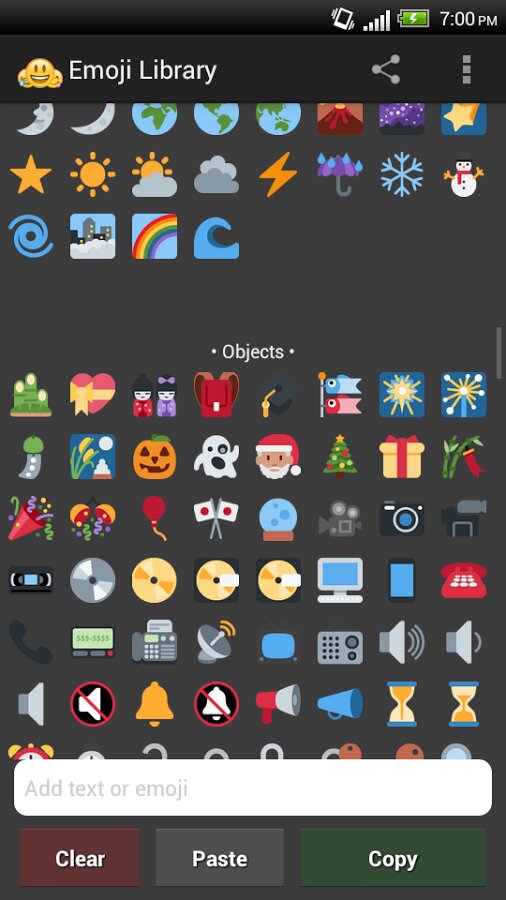 Emojiwoji 1.0 Приложения / Android / Клавиатуры Скачать на Трешбоксе Android 2.1+ Emojiwoji — сборник популярных emoji смайликов из iOs, который украсит ваши сообщения.Обновлено: 7 мая 2013, 23:43.Рейтинг 5 на основе 1 оценки. Dimaska Пользователь Комментариев пока нет Оставьте комментарий...
