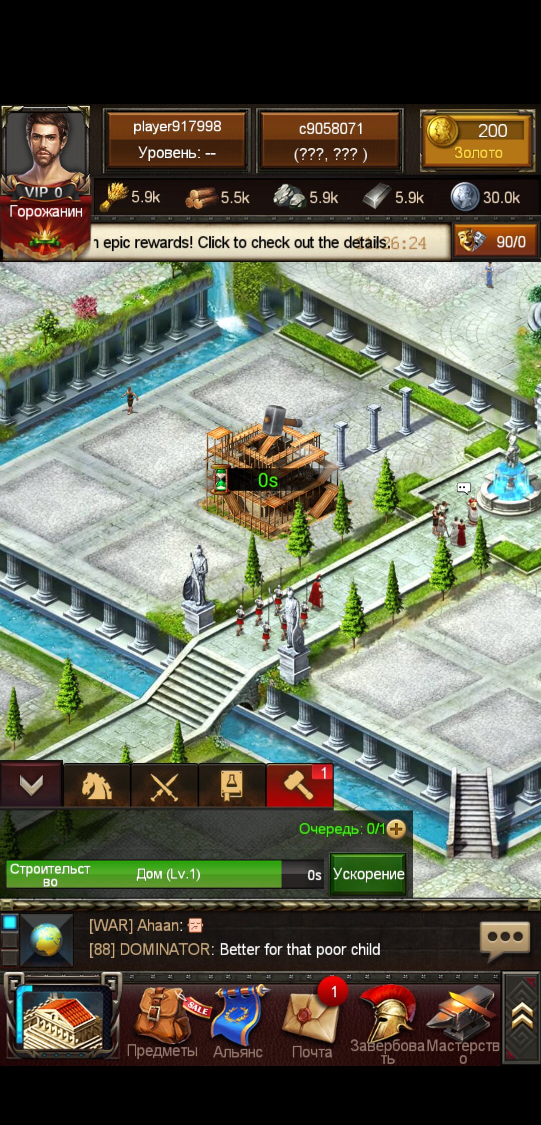 В нашей игре вы сможете не только построить собственный древний город, но и отвоевать чужой. Для этого вам понадобиться многочисленная обученная армия. В игре есть ежедневные задания, за выполнения которых вы будете получать бонусы и призы. Огромное количество уровне. После прохождения каждого уровня вам будут открываться новые возможности. Создавайте альянсы с другими игроками. Пригласите друзей в игру и создайте альянс с ними. Ну или боритесь с врагами своими силами. Пригласите в вашу армию легендарных героев и побеждать вы будете чаще. Проверьте свои навыки стратегии и логику. В игре присутствует современная графика и невероятные визуальные эффекты. Играйте с настоящими людьми в реальном времени. Обучайте свою армию чтобы та стала непобедимой. Расширяйте границы своего королевства. Торгуйте выращенными и созданными ресурсами с торговцами чтобы получить деньги на оружие и броню.