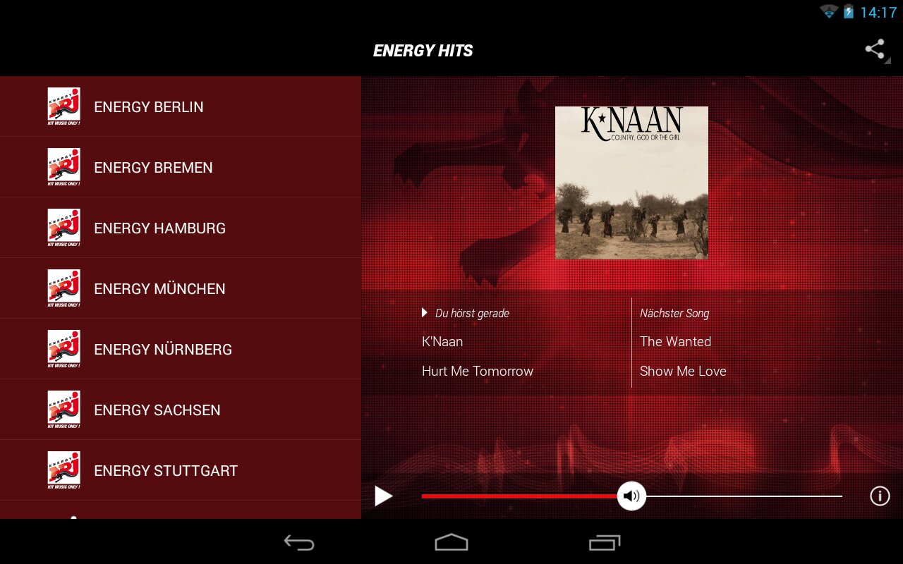 Слушайте все хиты ENERGY на вашем смартфоне бесплатно и в лучшем качестве звука в любом месте. С помощью нового приложения ENERGY вы можете легко получить все живые станции ENERGY Berlin, Bremen, Hamburg, Munich, Nuremberg, Saxony и Stuttgart.