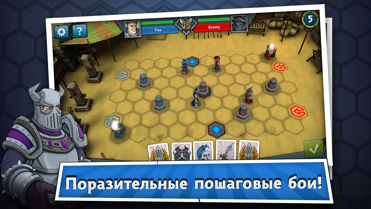 Одиночная игра – это фактически задачи для тренировки мозгов и изучения выигрышных стратегий. Однако, в игре с противником все намного интереснее – там не существует единственного пути к победе, количество комбинаций ходов столь же безгранично, как в шахматах! Отрабатывайте тактику в одиночных миссиях и наслаждайтесь бесконечными возможностями «Epic Arena», играя с друзьями или случайными противниками по всему миру!