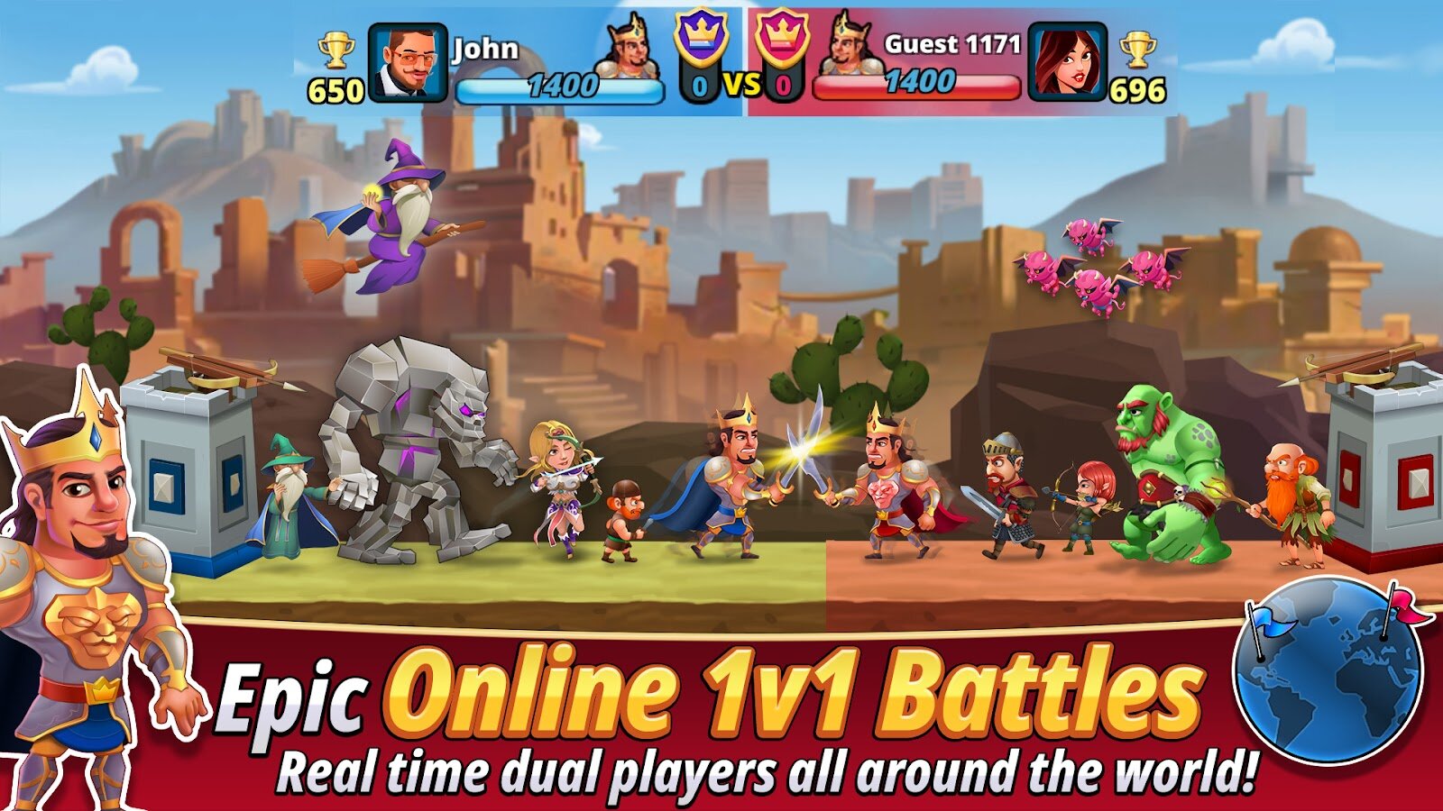- Динамичные схватки на арене с другими игроками онлайн или против компьютерных противников