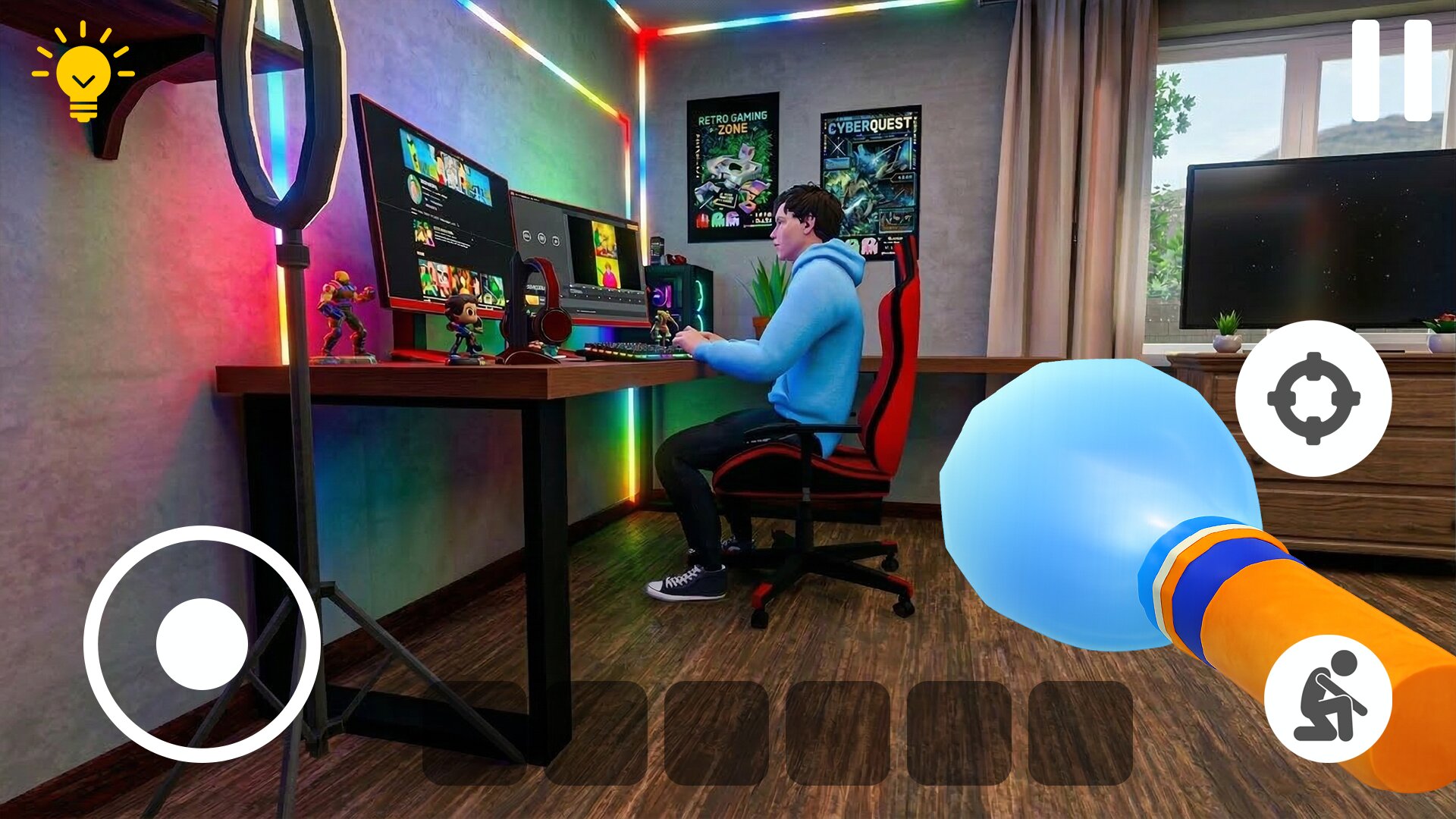 Побег от Блогера — это атмосферная игра в жанре survival horror, сочетающая в себе элементы стелса, приключенческого экшена и сложных головоломок. Вы играете за злоумышленника, проникшего в дом популярного блогера с целью раскрыть мрачные секреты, скрывающиеся за его публичным образом. То, что начинается как разведывательная миссия, быстро превращается в кошмар, когда все выходы оказываются заблокированы, и вы оказываетесь в ловушке вместе с опасным и непредсказуемым хозяином. Теперь ваша единственная цель — выбраться из этого дома ужасов живым.