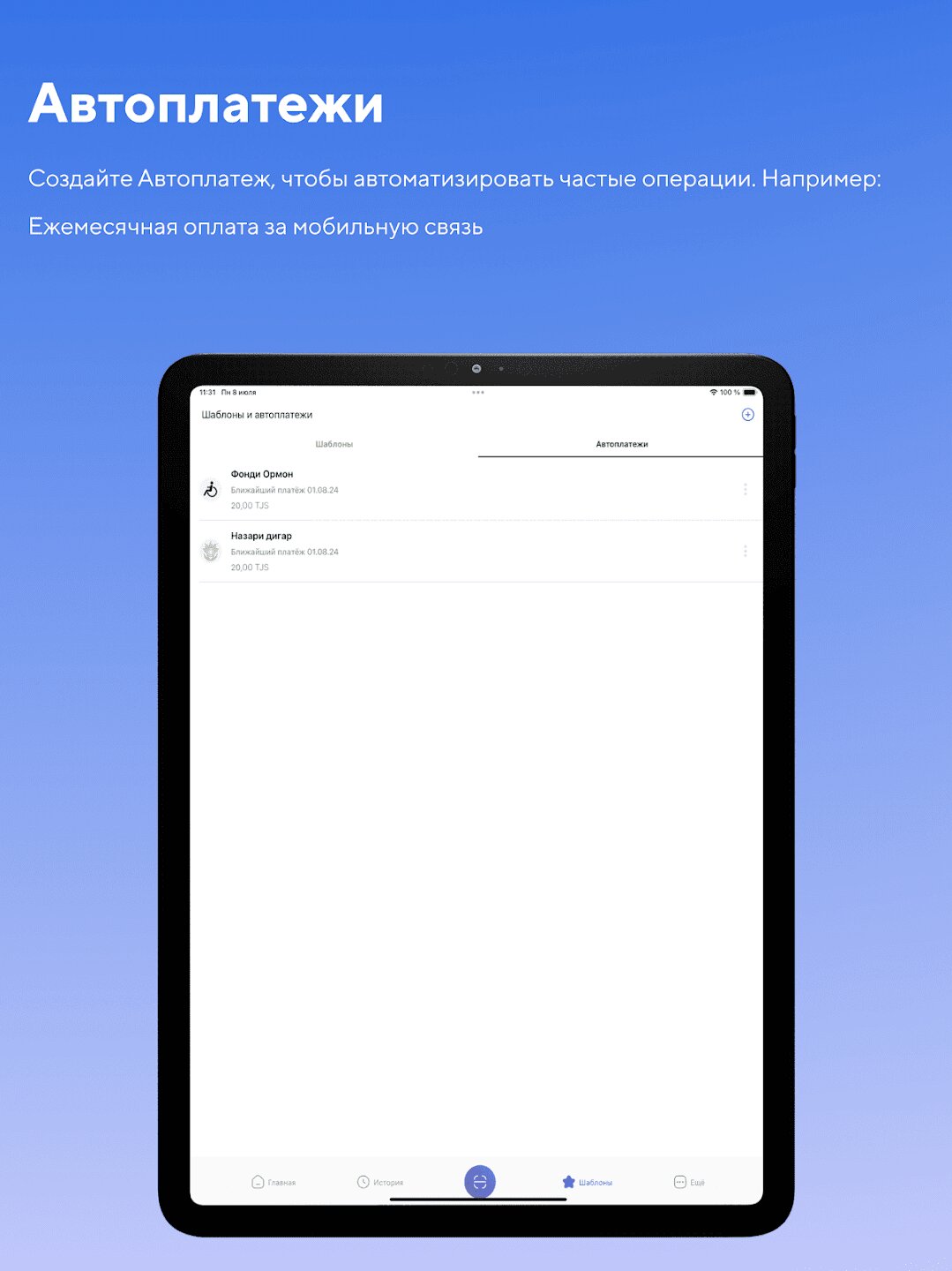 Одной из важных функций приложения это Удаленная идентификация пользователей. Всего 4 шага, и вы становитесь идентифицированным пользователем, которому открываются больше возможностей и лимитов. Но это еще не всё! БАНК ДАРИТ по 5 СОМОНИ, каждому пользователю, прошедшему удаленную идентификацию.