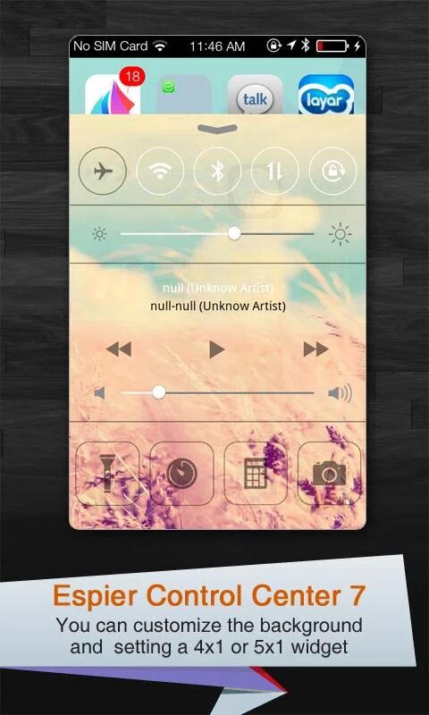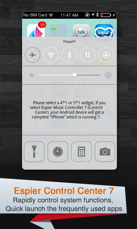 Espier Control Center 7 — плагин, который подойдёт как для Espier Launcher, так и для Espier Launcher 7. Данный плагин превратит вашу панель настроек в точную копию такой, которая используется в iOS 7!