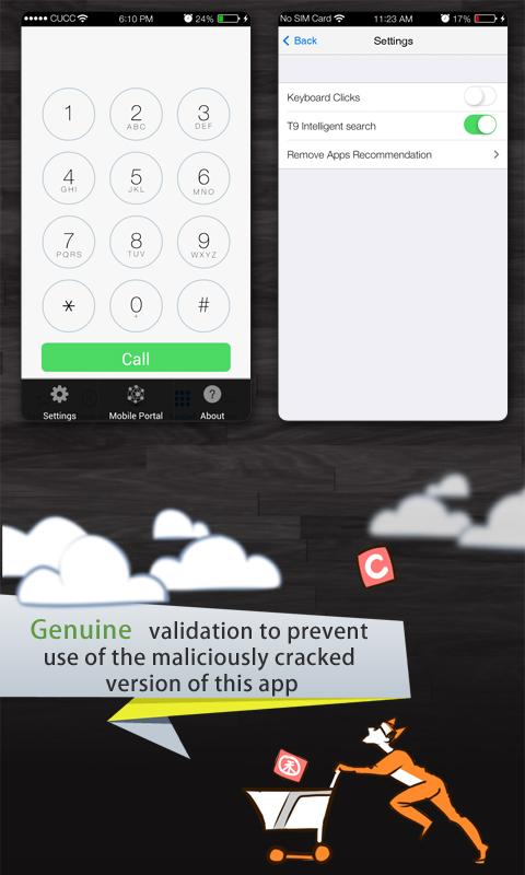 Приложение для смартфонов на ОС Android. Представляет собой номеронабиратель и список контактов, копирующий стиль и функциональность стандартного номеронабирателя из операционной системы iOS 7. В панели набора имеется возможность 'интеллектуального ввода' Т9.