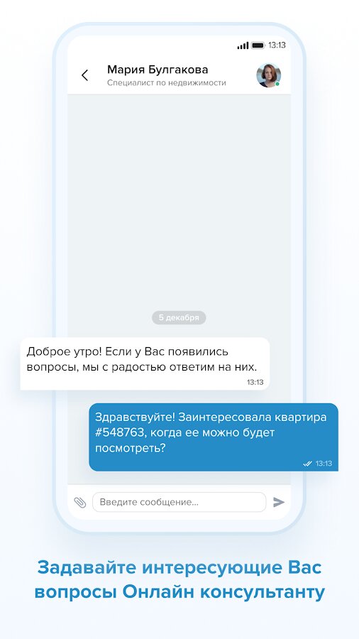 - В приложении легко купить коттедж, квартиру, частный дом: достаточно просто записаться на просмотр онлайн. А еще можно взять ипотеку дешевле, чем в банке, подать свое объявление и в любой момент связаться с помощником: экспертом по недвижимости.