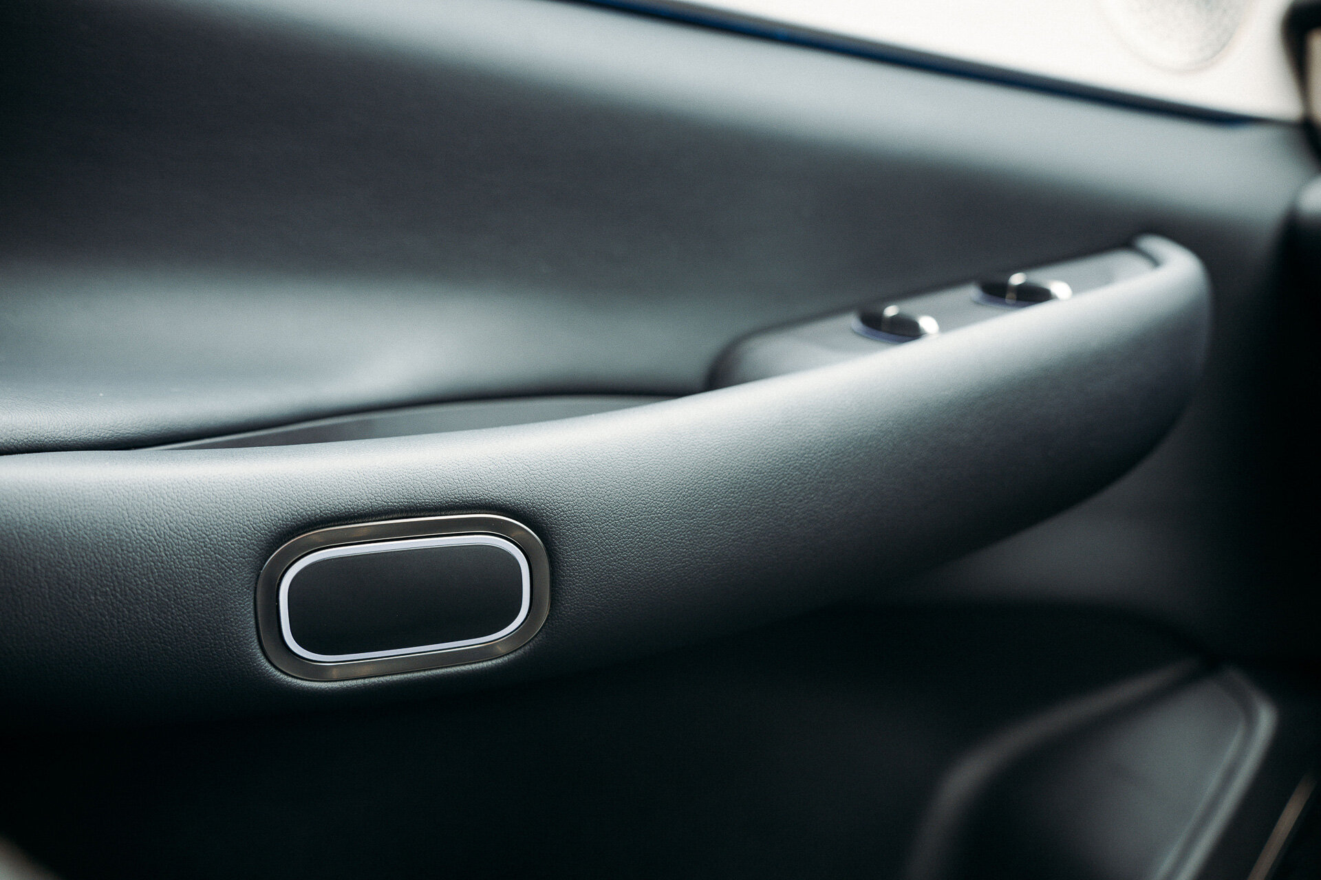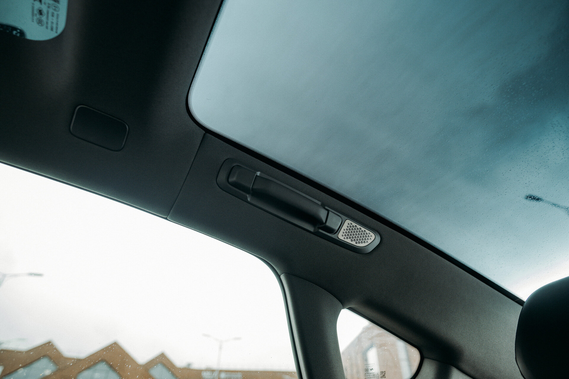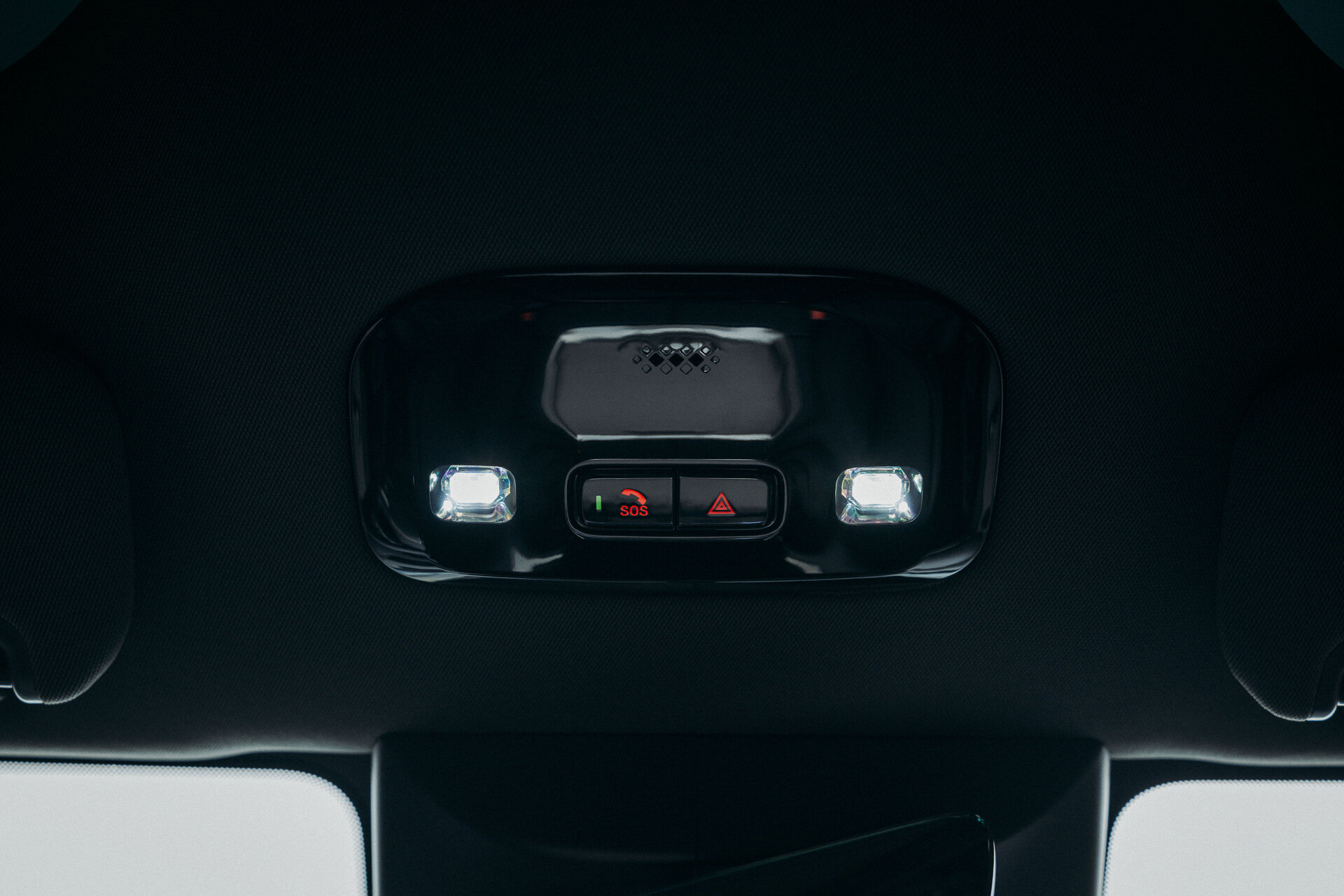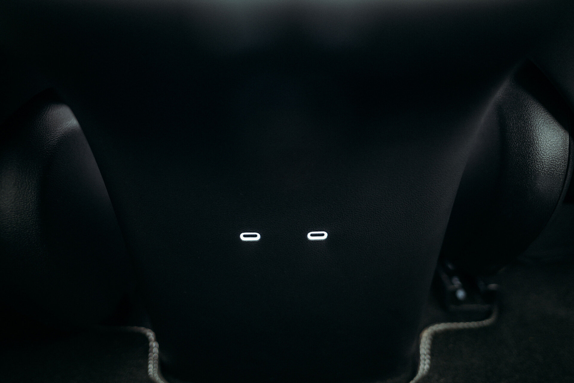 Сто́ит отметить, что несмотря на небанальность конструкции, ES не лишился ни лампочек на потолке, ни ручек. Посадочных мест хоть номинально и три, но на практике удобно будет лишь двоим. На что намекает и формовка дивана второго ряда.