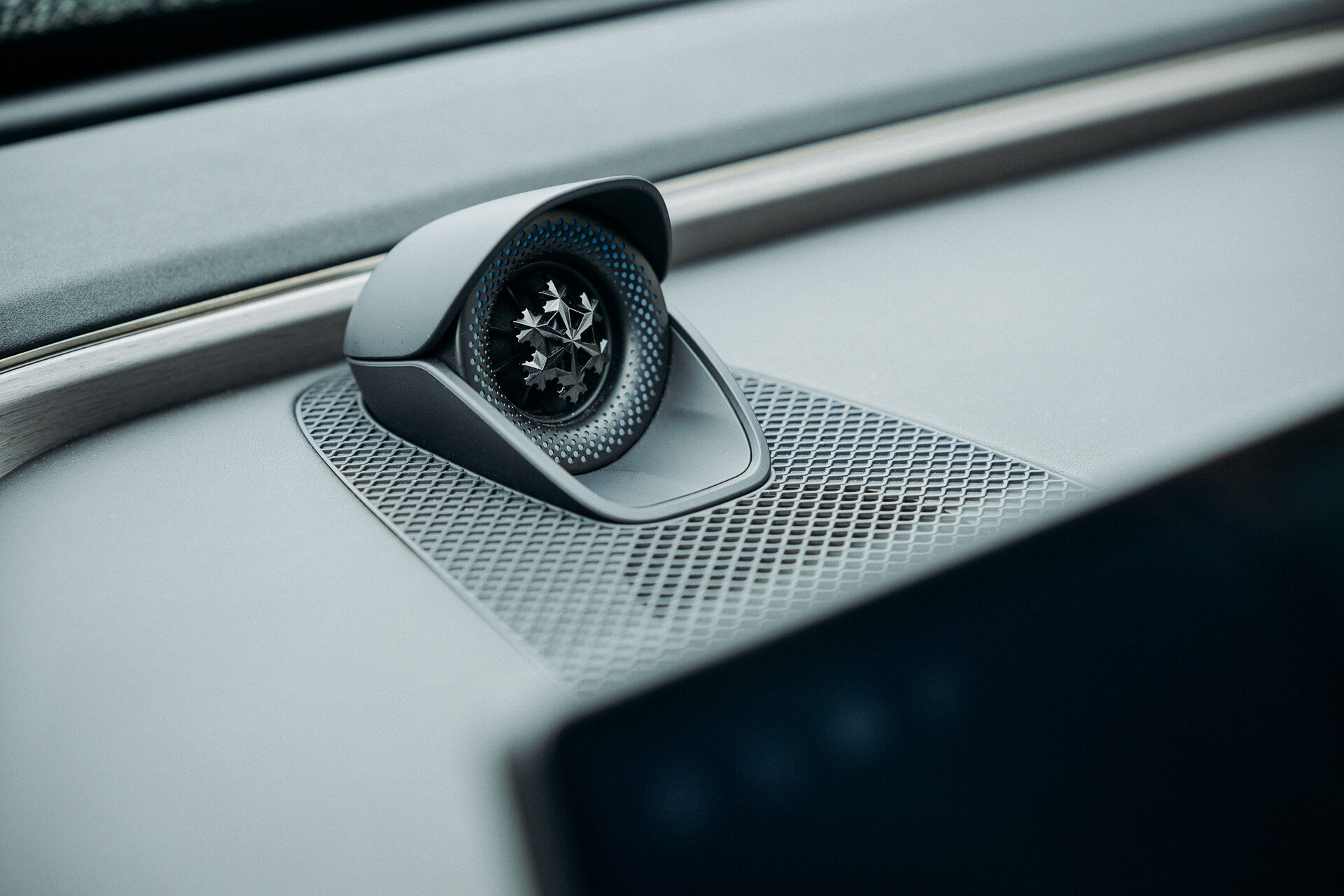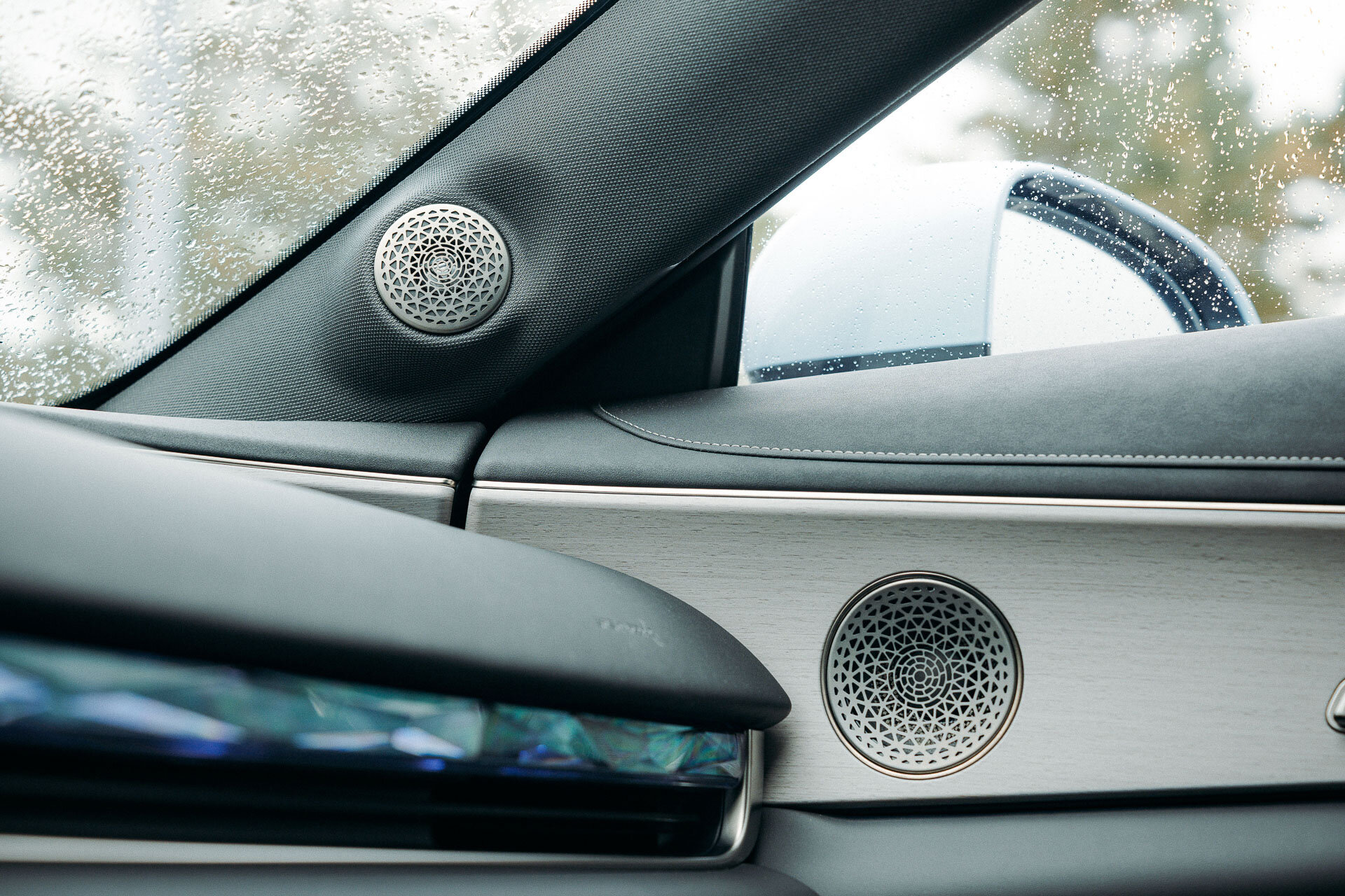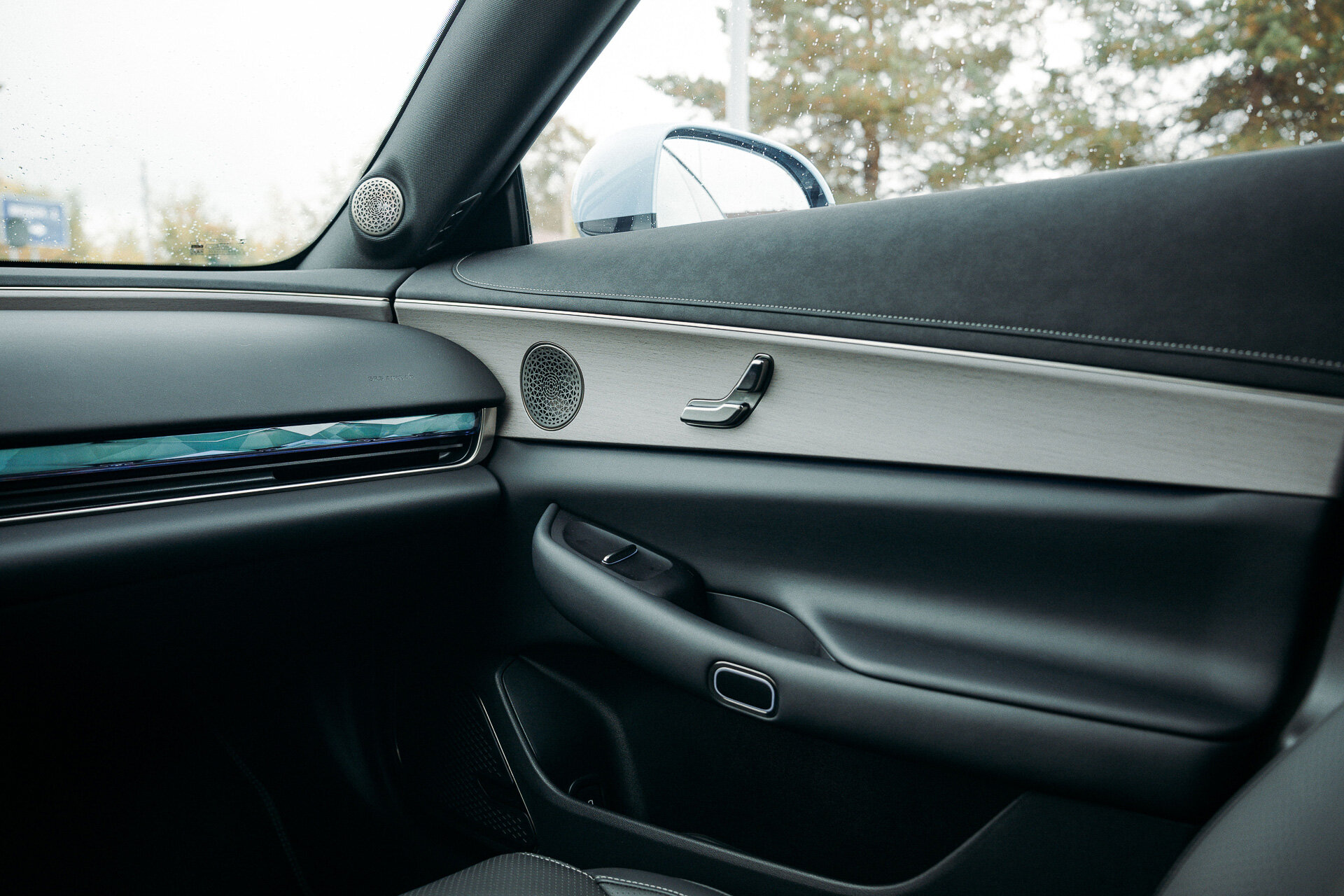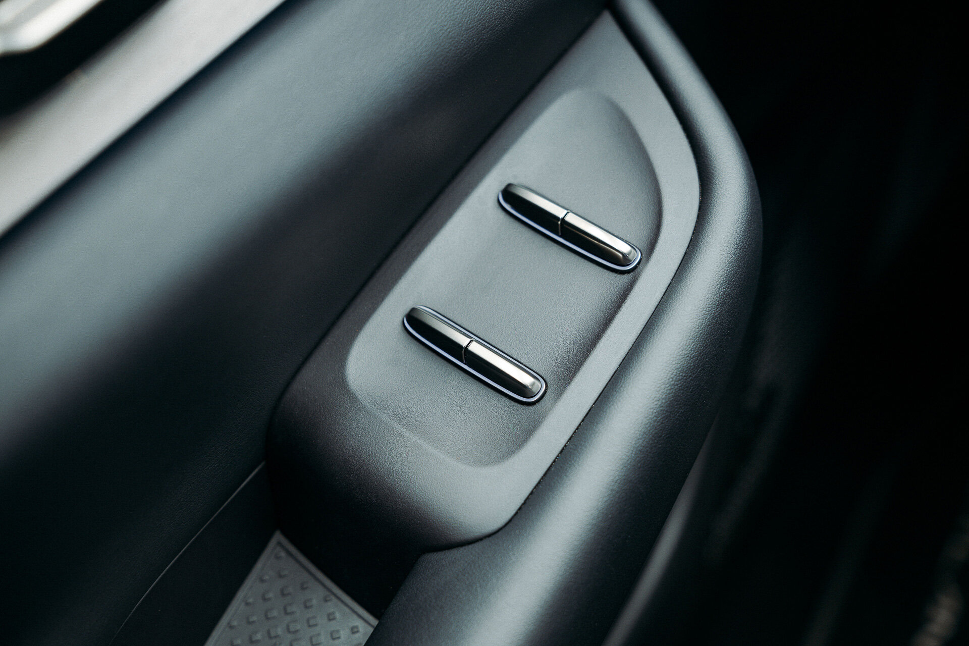 Сто́ит отметить, что несмотря на небанальность конструкции, ES не лишился ни лампочек на потолке, ни ручек. Посадочных мест хоть номинально и три, но на практике удобно будет лишь двоим. На что намекает и формовка дивана второго ряда.
