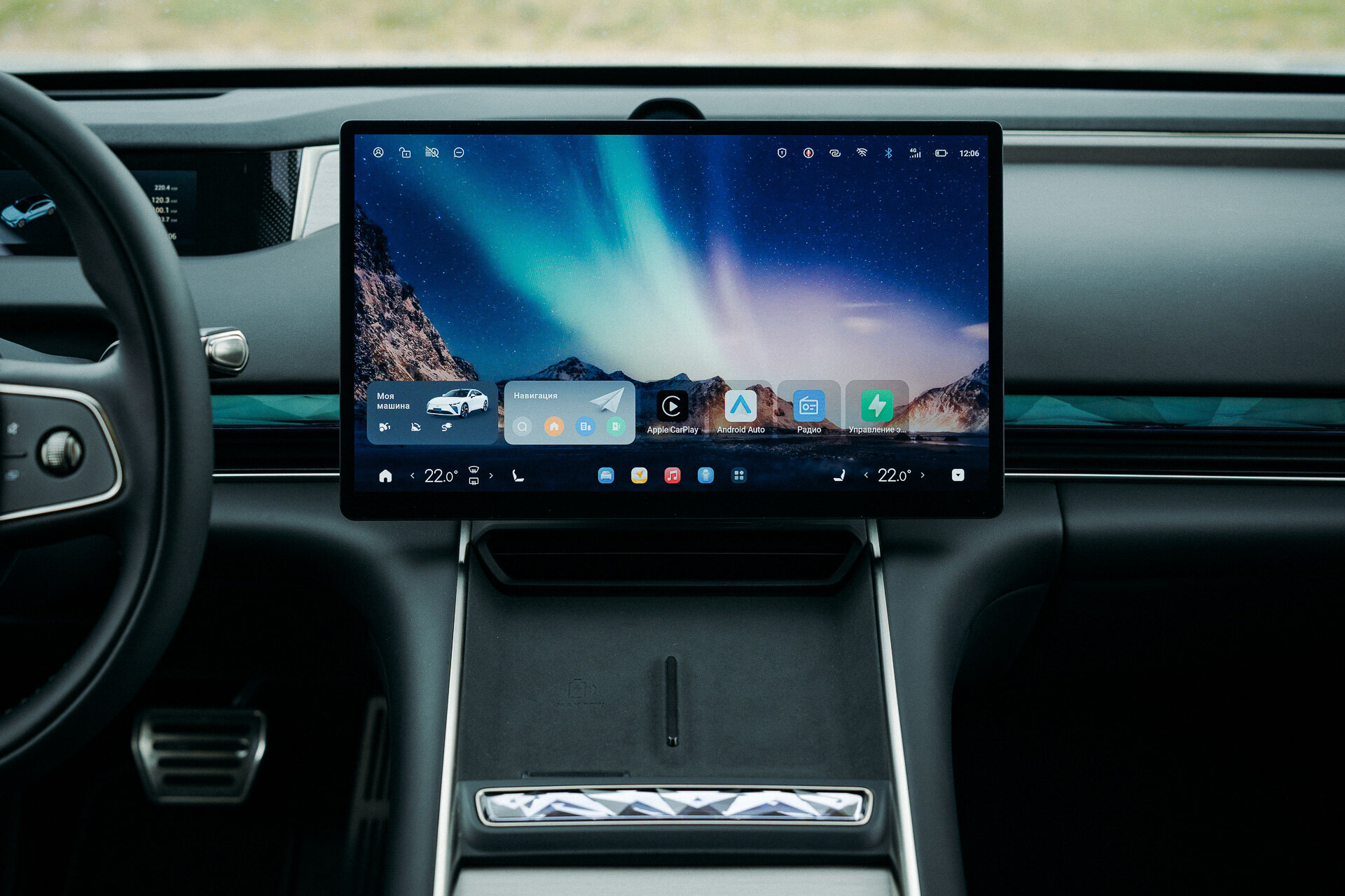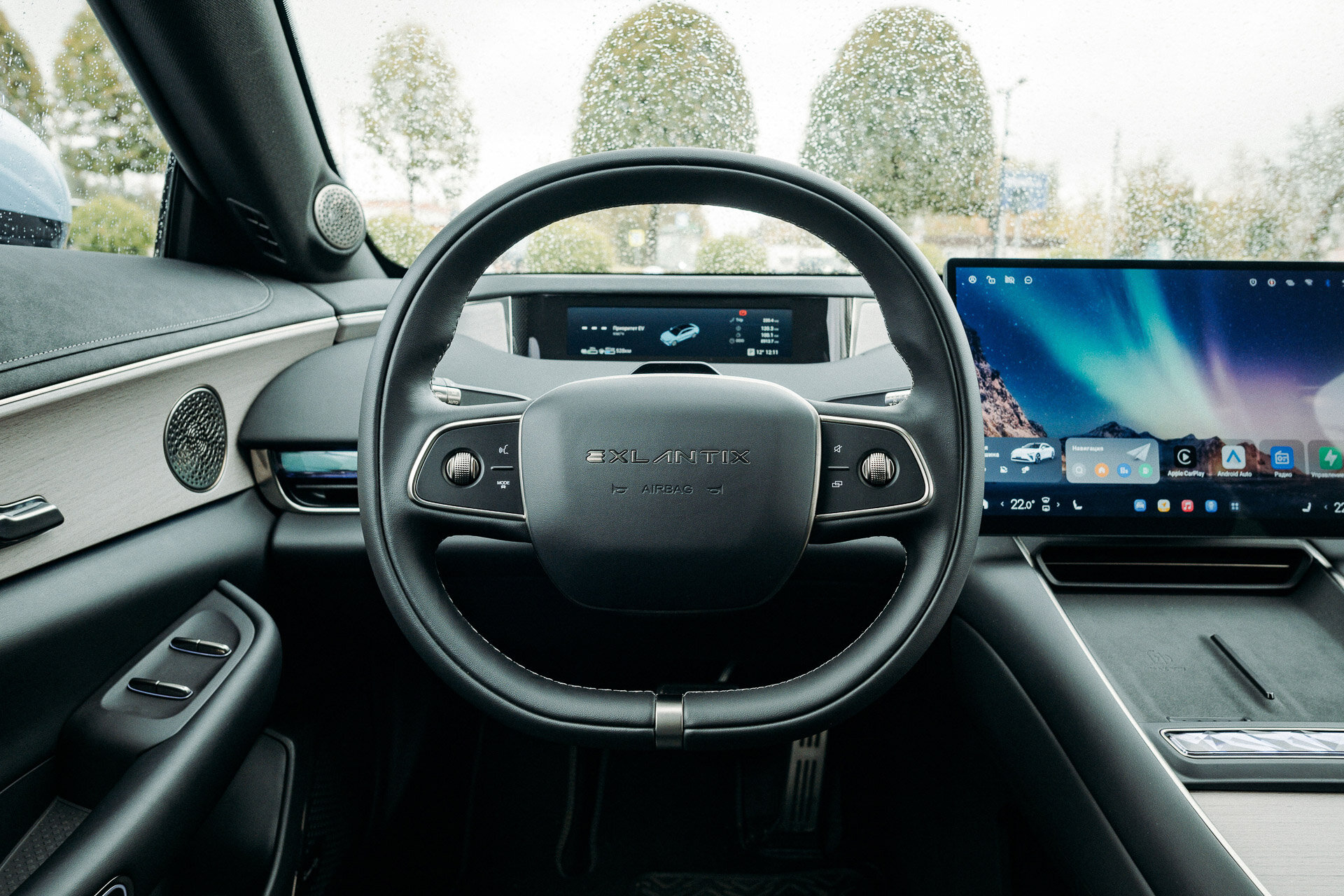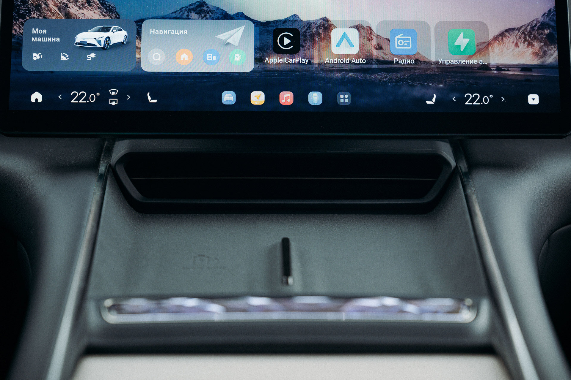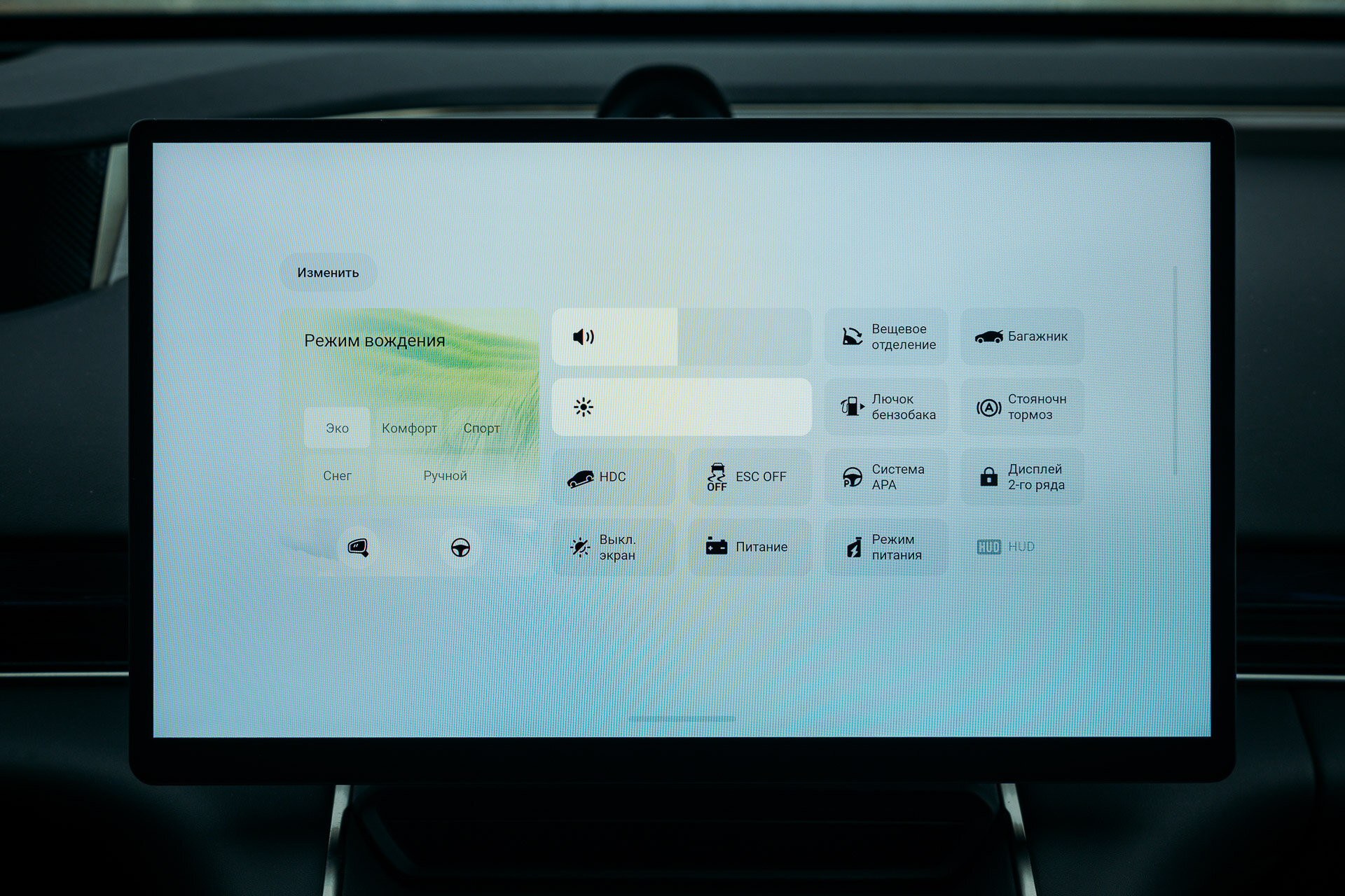 Сколько бы стиля здесь ни было, сто́ит поговорить про вопросы практичности. Забегая вперёд, скажу, что линейка Exlantix — яркие представители почти полного отказа от физических интерфейсов. В меню перенесли почти всё. Остался только руль. Шучу. Но ощущения такие есть. Сегодня можно встретить термин «автомобиль-планшет», вот это он.