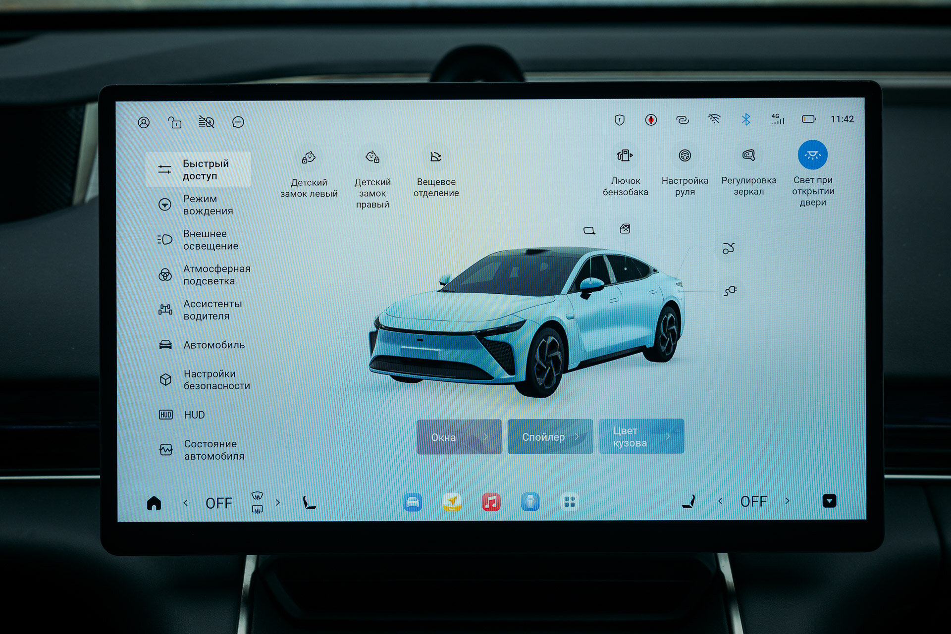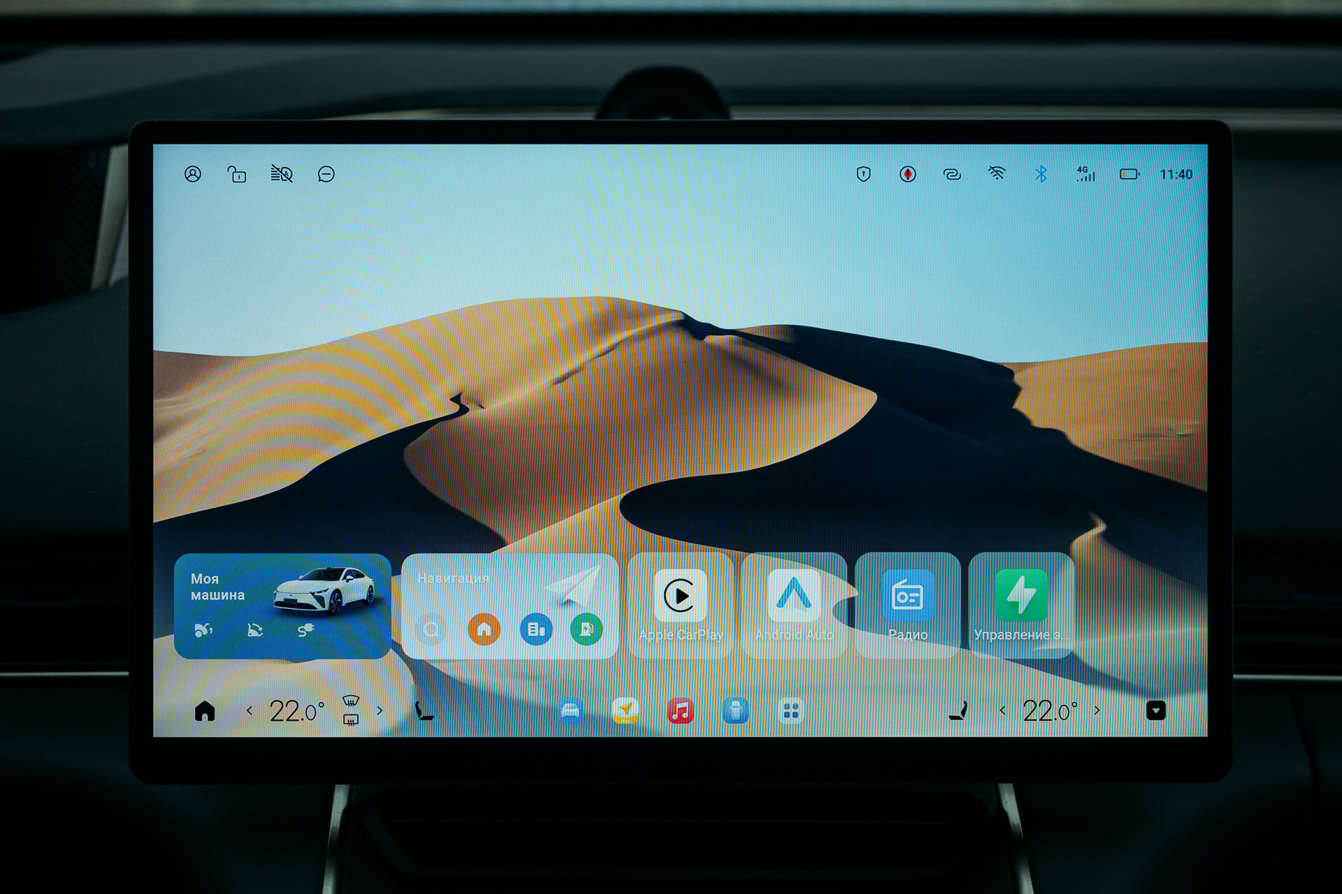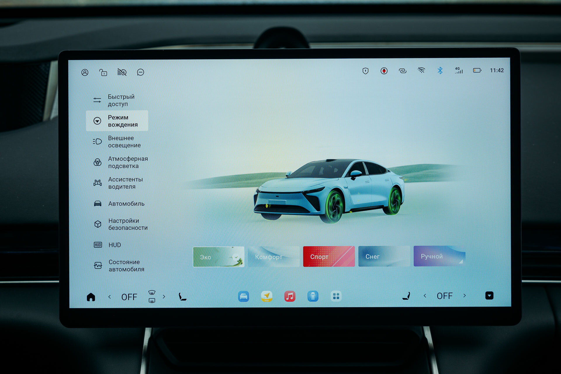 Сколько бы стиля здесь ни было, сто́ит поговорить про вопросы практичности. Забегая вперёд, скажу, что линейка Exlantix — яркие представители почти полного отказа от физических интерфейсов. В меню перенесли почти всё. Остался только руль. Шучу. Но ощущения такие есть. Сегодня можно встретить термин «автомобиль-планшет», вот это он.