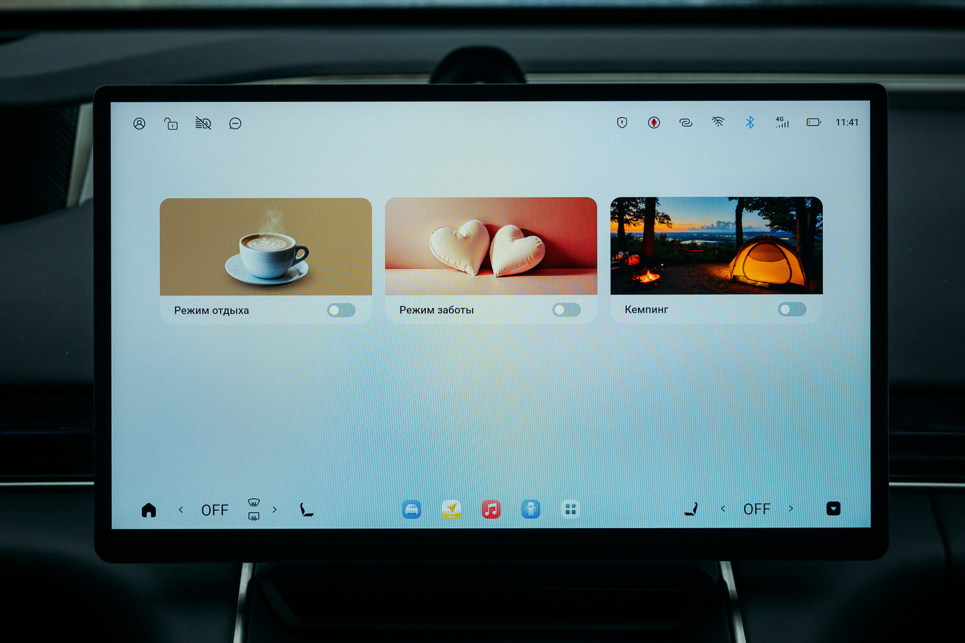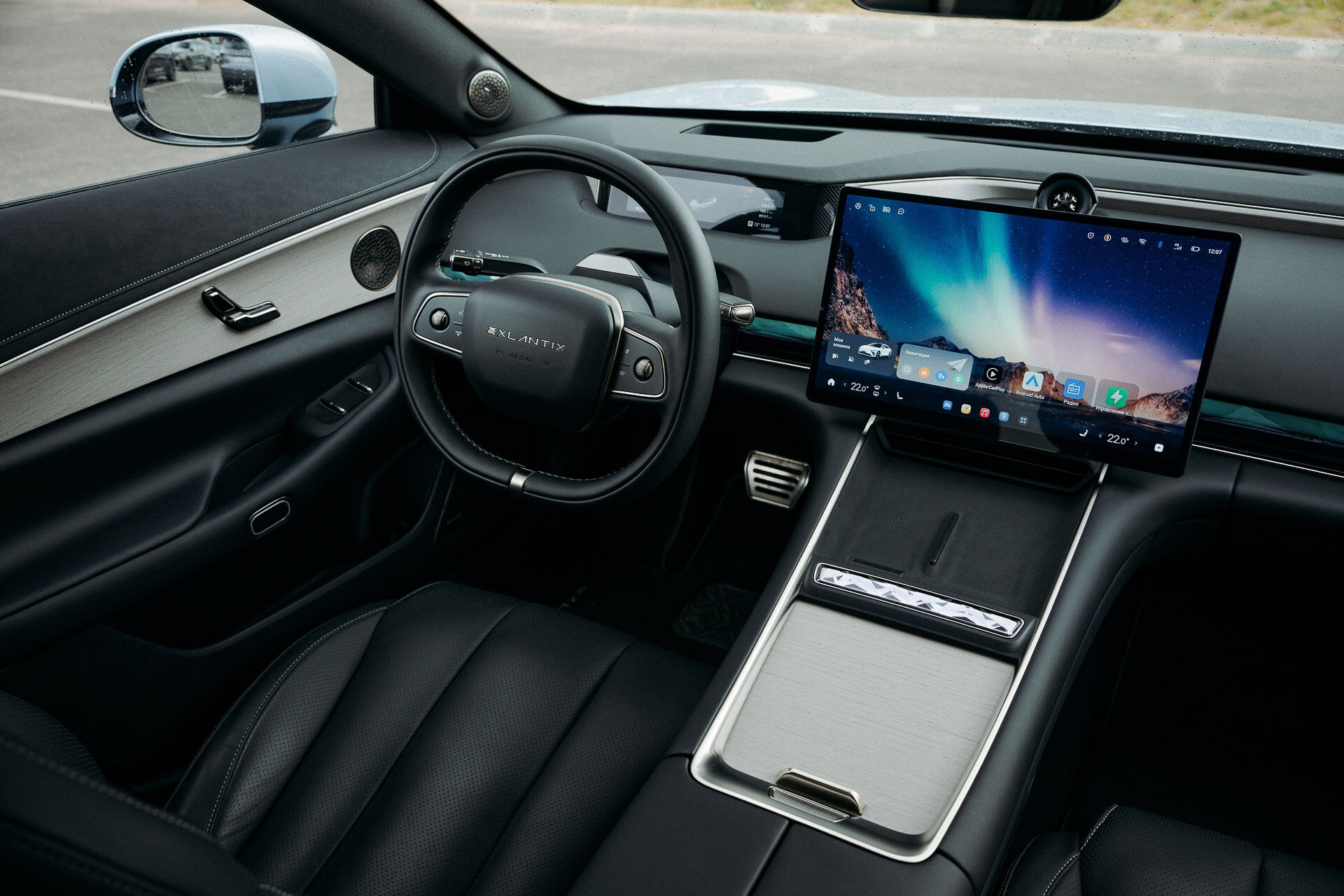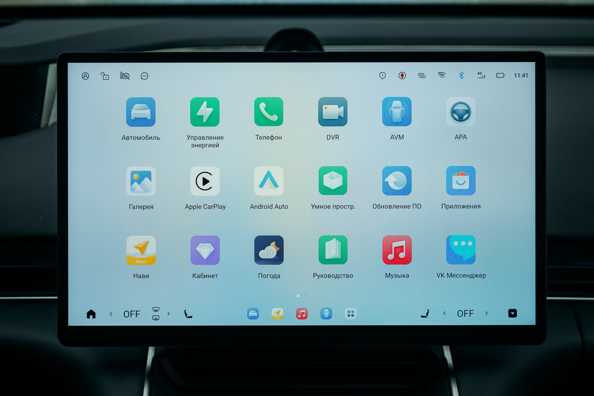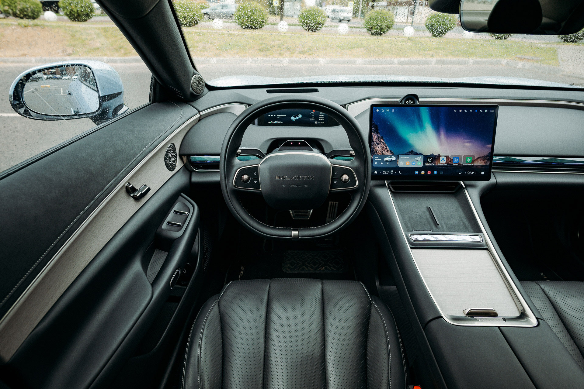 Сколько бы стиля здесь ни было, сто́ит поговорить про вопросы практичности. Забегая вперёд, скажу, что линейка Exlantix — яркие представители почти полного отказа от физических интерфейсов. В меню перенесли почти всё. Остался только руль. Шучу. Но ощущения такие есть. Сегодня можно встретить термин «автомобиль-планшет», вот это он.