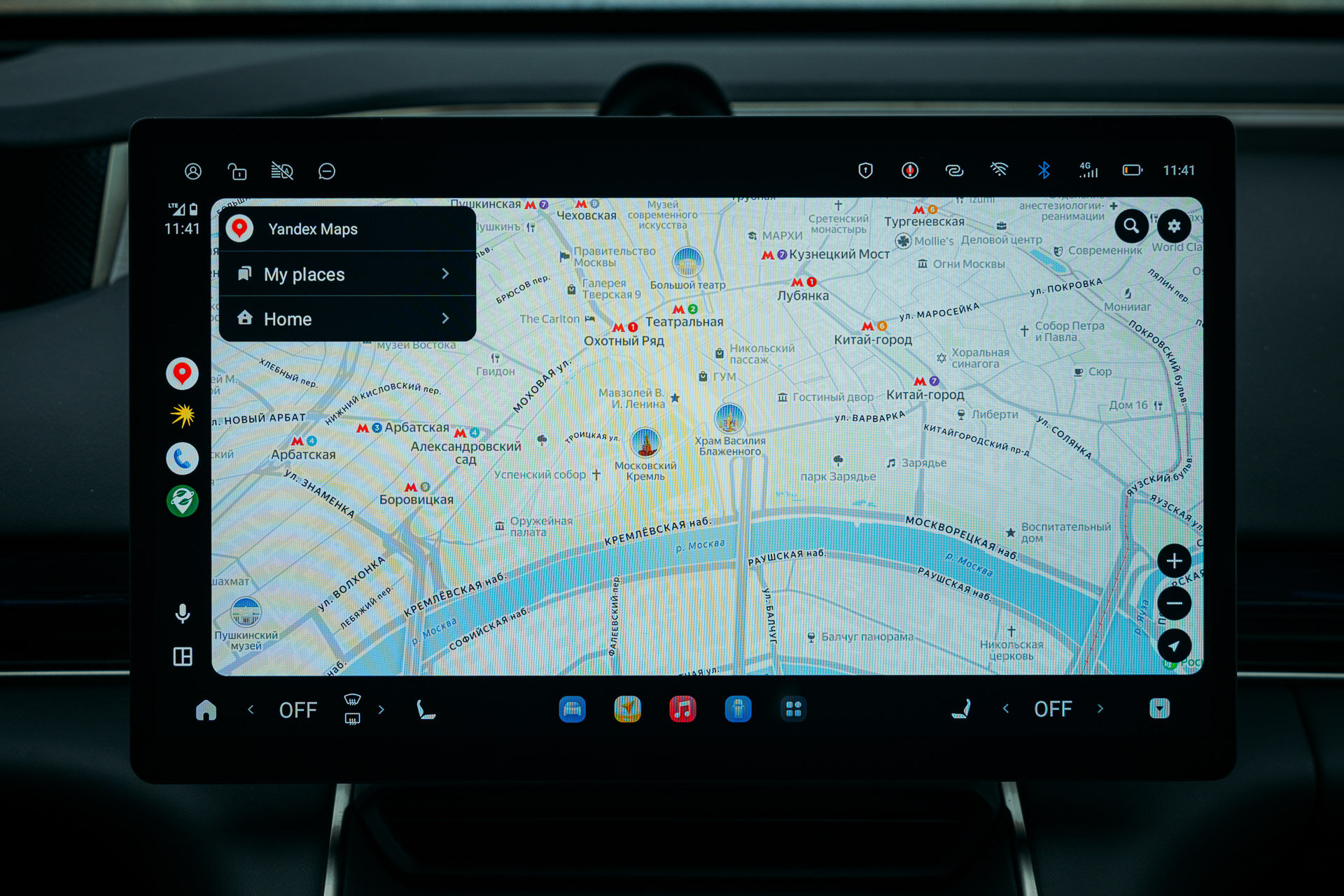 Важно отметить, что работает всё шустро. Нет намёков на подтормаживания и так далее. Иначе это была бы совсем беда. И да, я не могу не отметить, что со временем к каким-то моментам привыкаешь… но ощущается всё это по-прежнему противоестественно. А ещё здесь есть беспроводные способы сопряжения как с Android, так и с iOS. А также голосовое управление. Командовать можно, например, кондеем. Автомобиль даже распознаёт, с какого места к нему обращаются.