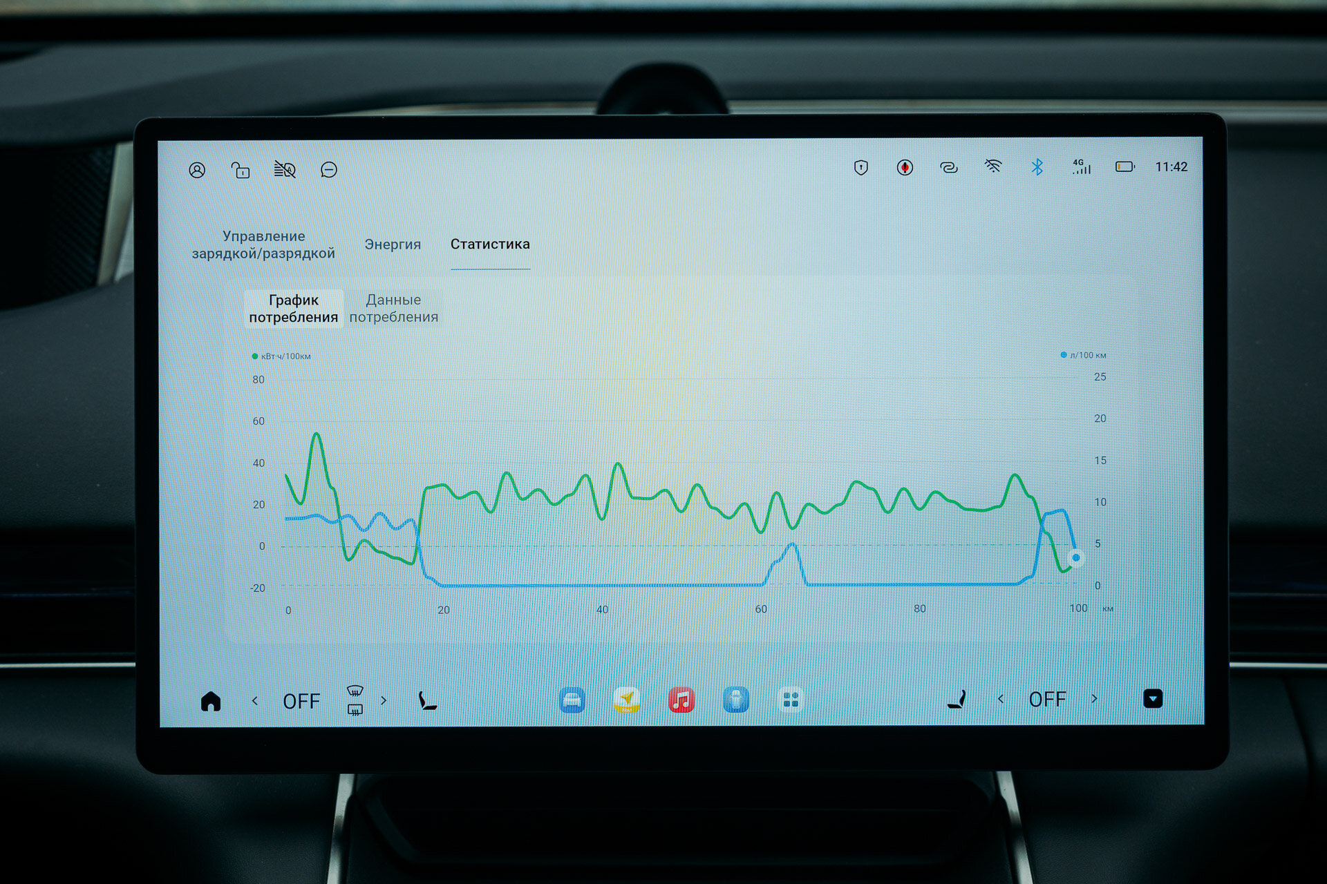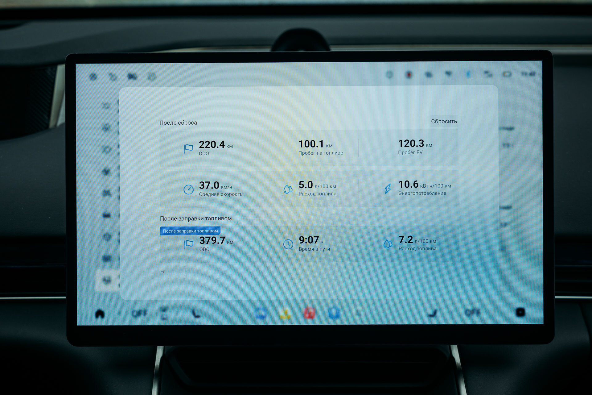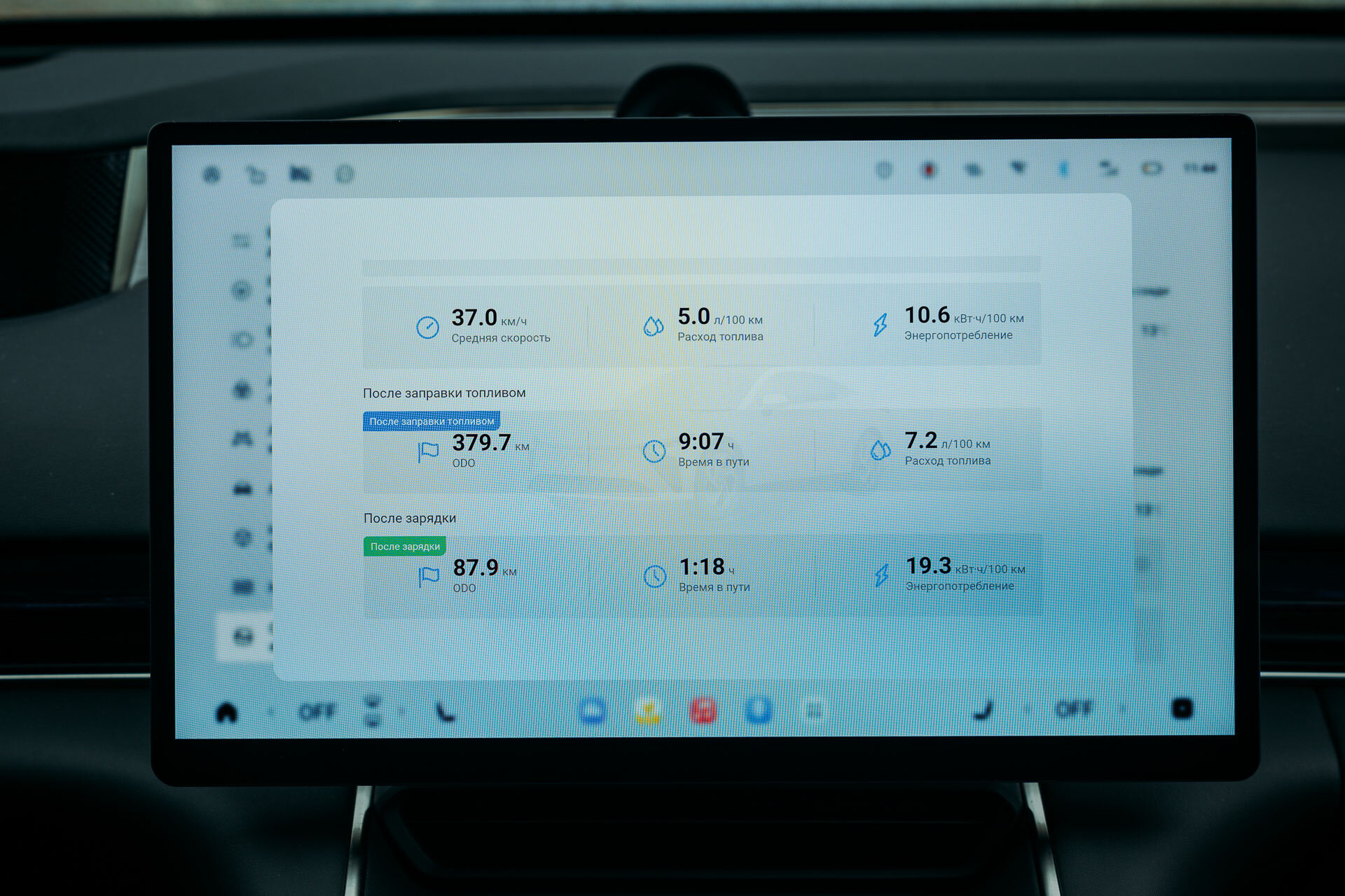 Ладно, на электричество, точнее на зарядку самого автомобиля, можно вовсе забить. Да, слово разговорное, но именно в таком ключе хочется подать мысль, что это немного неразумно. Ведь гибрид позволяет солидно расширить запас хода. Но для этого придётся подыграть, а точнее заряжать и заправлять. Но в первую очередь заряжать. Выполнив этот квест (да, для мегаполиса вроде Москвы это всё ещё не самая простая задача, в сравнении с посещением АЗС), увидите ошеломительные 1100 километров запаса хода. Или даже больше.