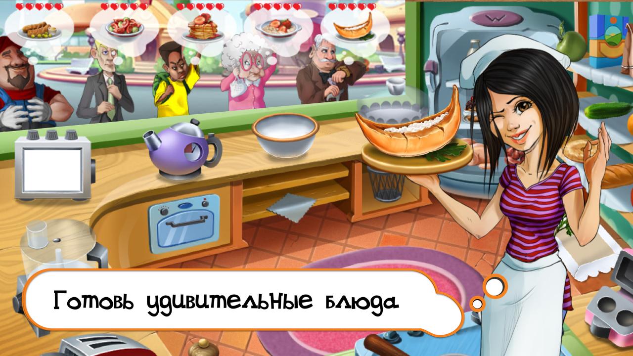 Вперед: готовить, парить, жарить, смешивать и комбинировать! В этой захватывающей игре жанра тайм-менеджмент ресторанный мир приветствует нового шеф-повара с его рестораном, кафе! Вас ждет настоящее кулинарное соревнование! Управляйте работой кухни, пеките пончики и мешайте коктейли! Справитесь?! Кафе на русском ждет вас!