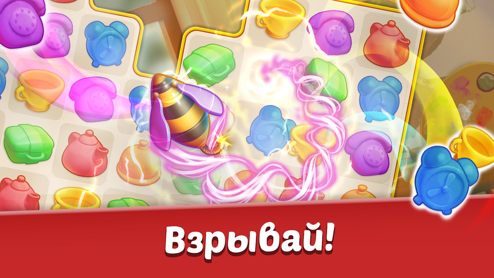 - Неординардный геймплей в жанре «три в ряд», дополненный динамичными комбинациями на поле и мощными бустерами.