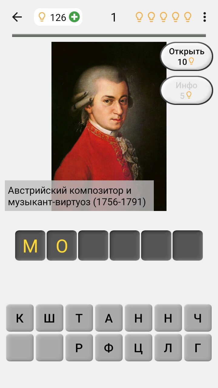 Известные люди Тест по истории — это обширная викторина, в которой игрокам предстоит узнать 476 самых знаковых личностей мировой истории. От Юлия Цезаря до Фиделя Кастро, от Мэрилин Монро до Стивена Хокинга — этот тест проверит ваши знания о королях и королевах, актерах и режиссерах, ученых и художниках на двух уровнях сложности и в четырех специализированных категориях. Если вы увлекаетесь историей или просто интересуетесь известными личностями, эта игра предлагает увлекательный способ познакомиться с людьми, которые сформировали наш мир.