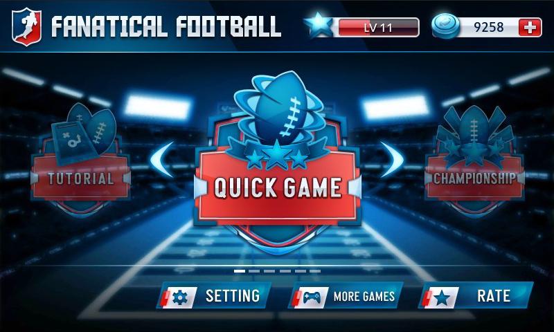 Фанатическое регби приведет тебя чувствовать пульс сезона соревнования NFL. Создайте свою команду, используя полное новое улучшенное сенсорное управление и режим игры, управлять операции наступления и обороны! Используя полный новый, наглядный нажим и управление сдвигание по экрану, путем наступление движения, передачи мяча и острого удара на получение очко достижением точки. Благодаря улучшенных изображений, позволяя тебя наслаждаться инновационным эффектом зрителей и окружающей среды, ты можешь испытать беспрецедентный жизненный регби!