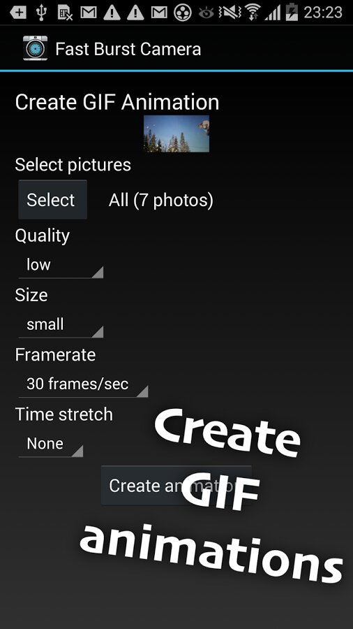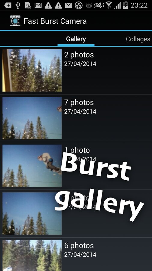 Fast Burst Camera — приложение для мультисъемки. Позволяет делать 5-10 кадров в секунду, использовать вспышку, фокус и зум, а также отключить звук затвора.