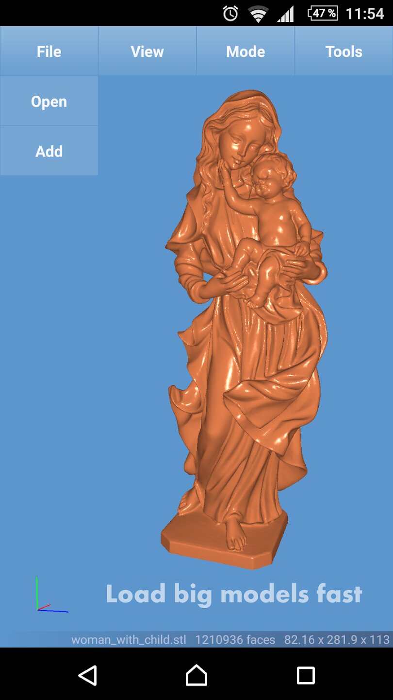 - Быстрая загрузка больших файлов (миллионы треугольников).