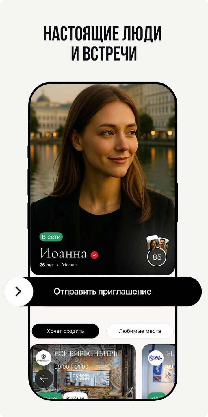 - Содействие реальным встречам, а не бесконечным чатам.