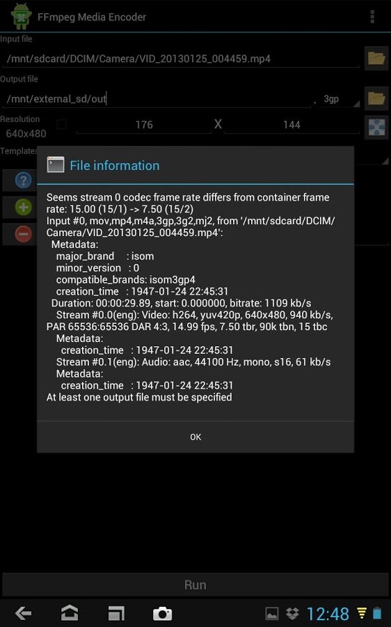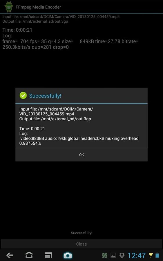 Поддерживает: MPEG4, h264, mp3, 3gp, aac, ogg (vorbis и theora) и многие другие форматы (список вы найдете в самой программе). Оптимизация для ARMv6(vfp) и ARMv7 (cortex-a8)