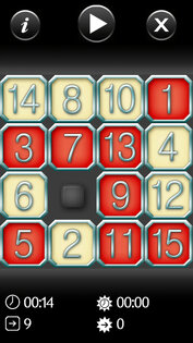Fifteen — классическая числовая головоломка, в которой нужно перемещать кубики с цифрами по игровому полю, используя свободную клетку, для того чтобы последовательно выстроить все цифры одну за другой. Для начала игры нажмите на кнопку, запускающую таймер. Также внизу отображается время, которое является лучшим результатом для того или иного уровня