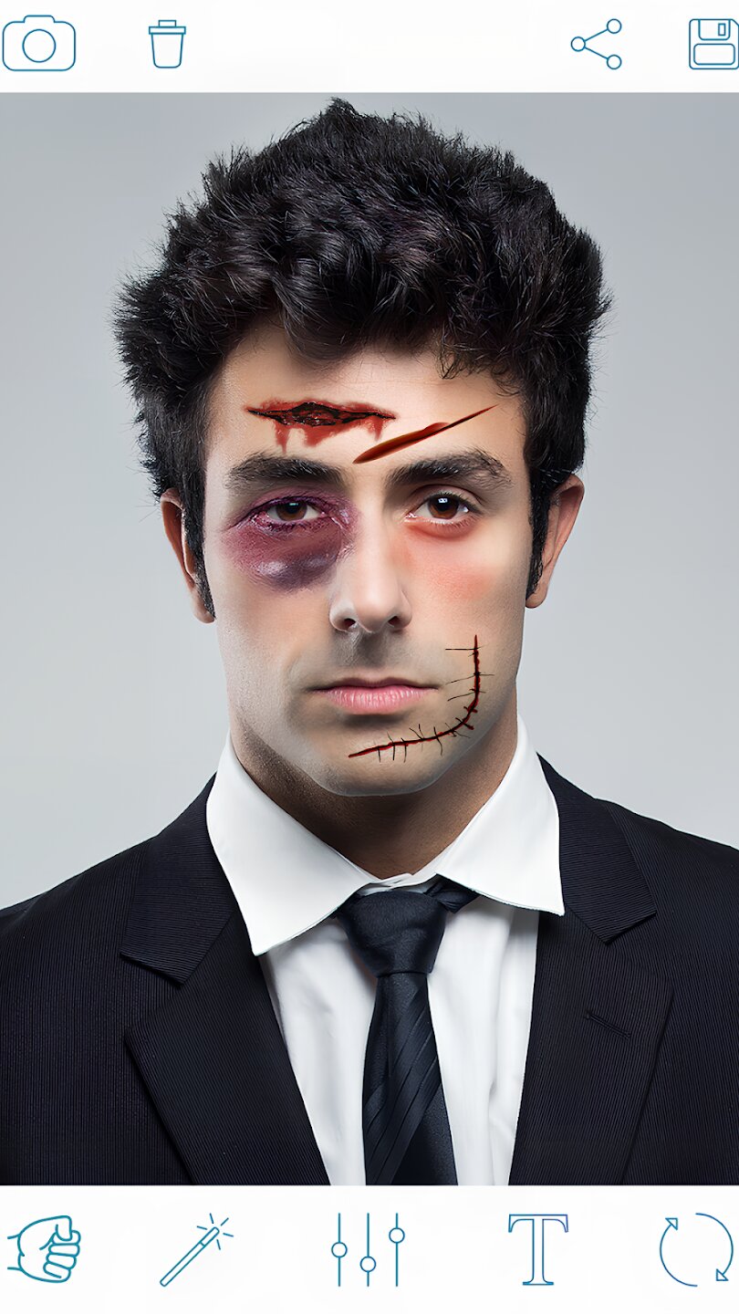 Шрамы и Синяки: Фоторедактор – это креативное приложение для добавления на фото реалистичных эффектов ран, повреждений и боевых последствий.