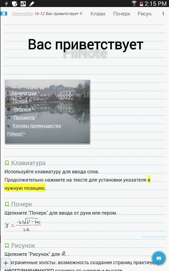 FiiNote — один из самых лучших приложений для заметок на Андроиде. Приложение работает на 2.x-4.x андроиде. Дизайн разработан специально для удобной работы на планшете и телефон.