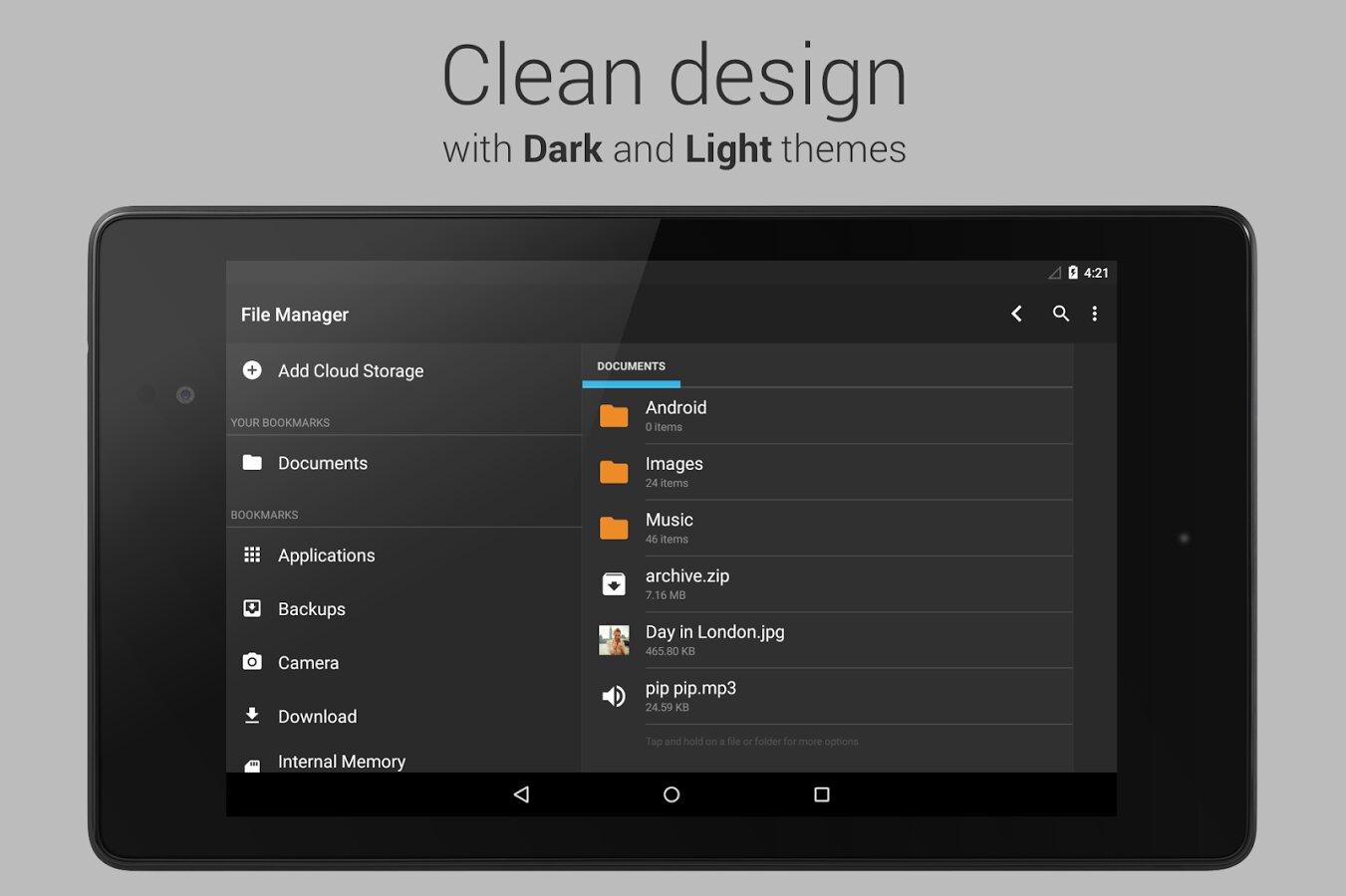 Файловый менеджер Maple Media — проводник менеджер файлов и приложений для телефонов и планшетов на Android, выполненный в стиле Holo. С помощью Clean File Manager Вы можете легко находить, просматривать, перемещать, архивировать и совершать другие действия с файлами и приложениями прямо на ходу.
