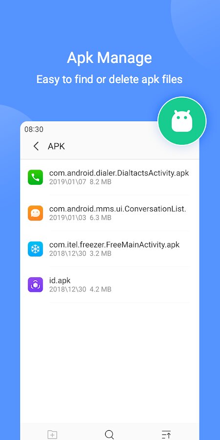Эти проблемы больше не возникнут с вами. Мы предоставляем страницу управления apk, все apk-файлы будут автоматически распределены по категориям и отображены там. Вы можете устанавливать их и удалять. Все становится проще. - Панель глобального поиска: Найдите нужные вам файлы в вашем мобильном телефоне несколькими щелчками мыши.