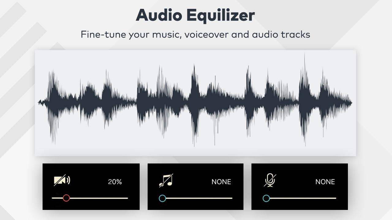 - С помощью Аудио Микшера, вы можете отрегулировать и сбалансировать музыку, звук и голос за кадром.