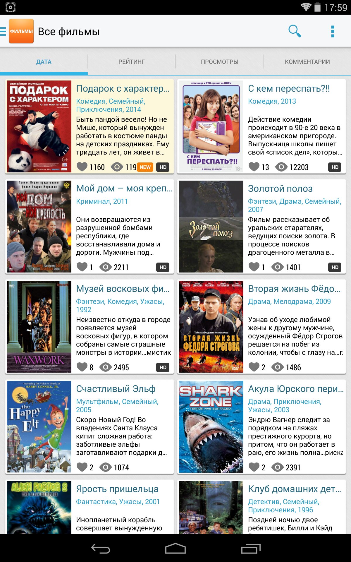 Фильмы онлайн — предлагаем вашему вниманию отличное приложение для андроид устройств, представляющее собой мобильный клиент, предлагающий более 10 тыс. фильмов–новинок в хорошем качестве. Кроме того имеет простой и удобный интерфейс для просмотра фильмов онлайн. Приятного просмотра! Русский язык: да