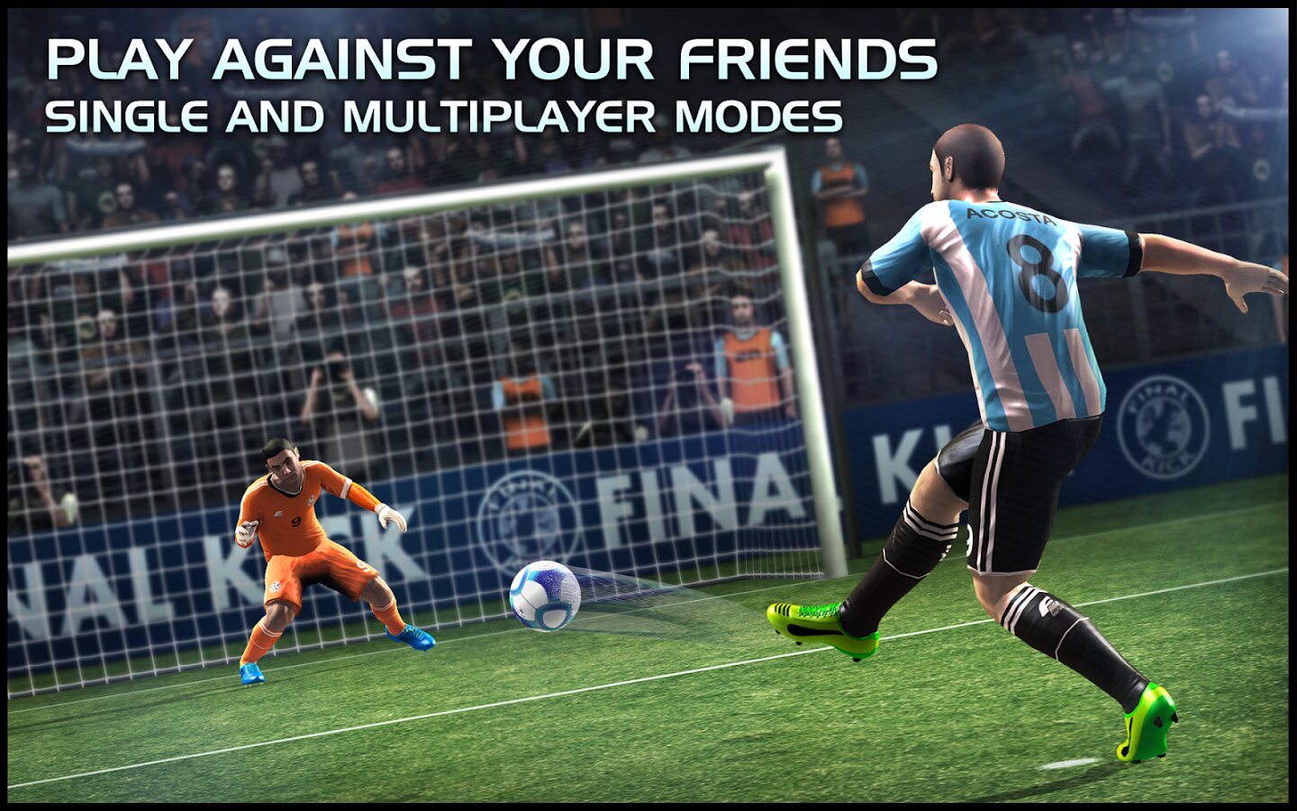 Final Kick — ни что иное, как симулятор пробития пенальти, в котором нам предстоит сыграть как за исполнителя удара, так и за вратаря.Пенальти пробивается с помощью свайпа от мяча до чужих ворот, причем от скорости движения вашего пальца зависит сила удара. Если мяч полетел слишком медленно, шансов на гол практически не остается. Во время игры за вратаря главное не перестараться — первые несколько раз я делал свайп слишком резко, и в результате мой голкипер улетал в сторону до момента нанесения удара.Я считаю, что не стоит рассматривать игру как серьезный симулятор футбольных элементов, но в тоже время у игры есть всё для создания самого главного — футбольного настроения. В Final Kick реализована кастомизация команды и игроков, обучение футболистов, реплики комментаторов, замедленные повторы ваших голов и промахов.Ту цель, которую я ставил перед игрой, она оправдала. Теперь вы можете попробовать самостоятельно по упражняться в пробитии пенальти на своем Андройде ведь игра перекочевала с iPhone и iPad.
