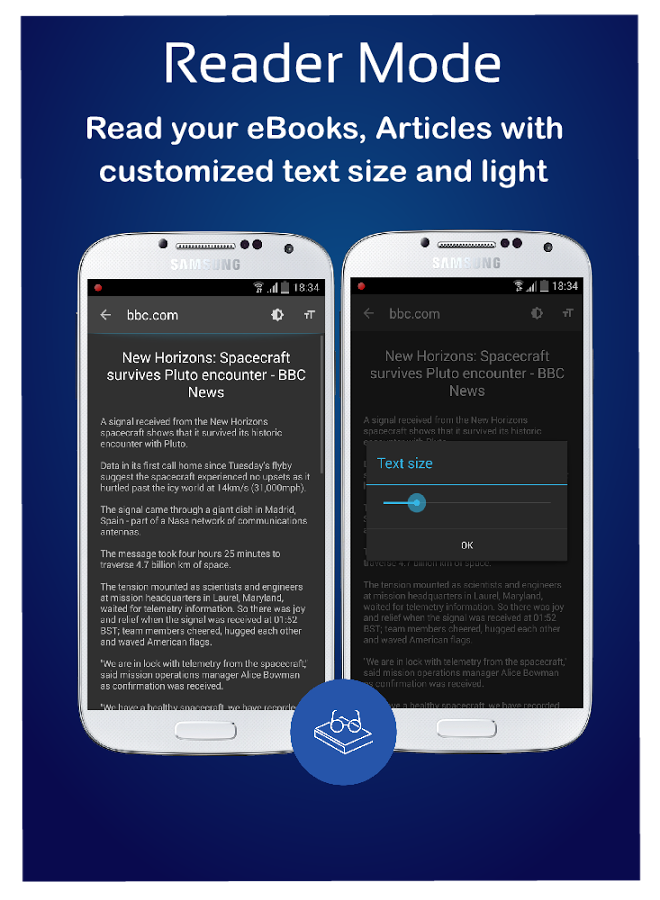 Режим чтения: позволяет читать новости или статьи с помощью пользовательских шрифтов и легким использованием.