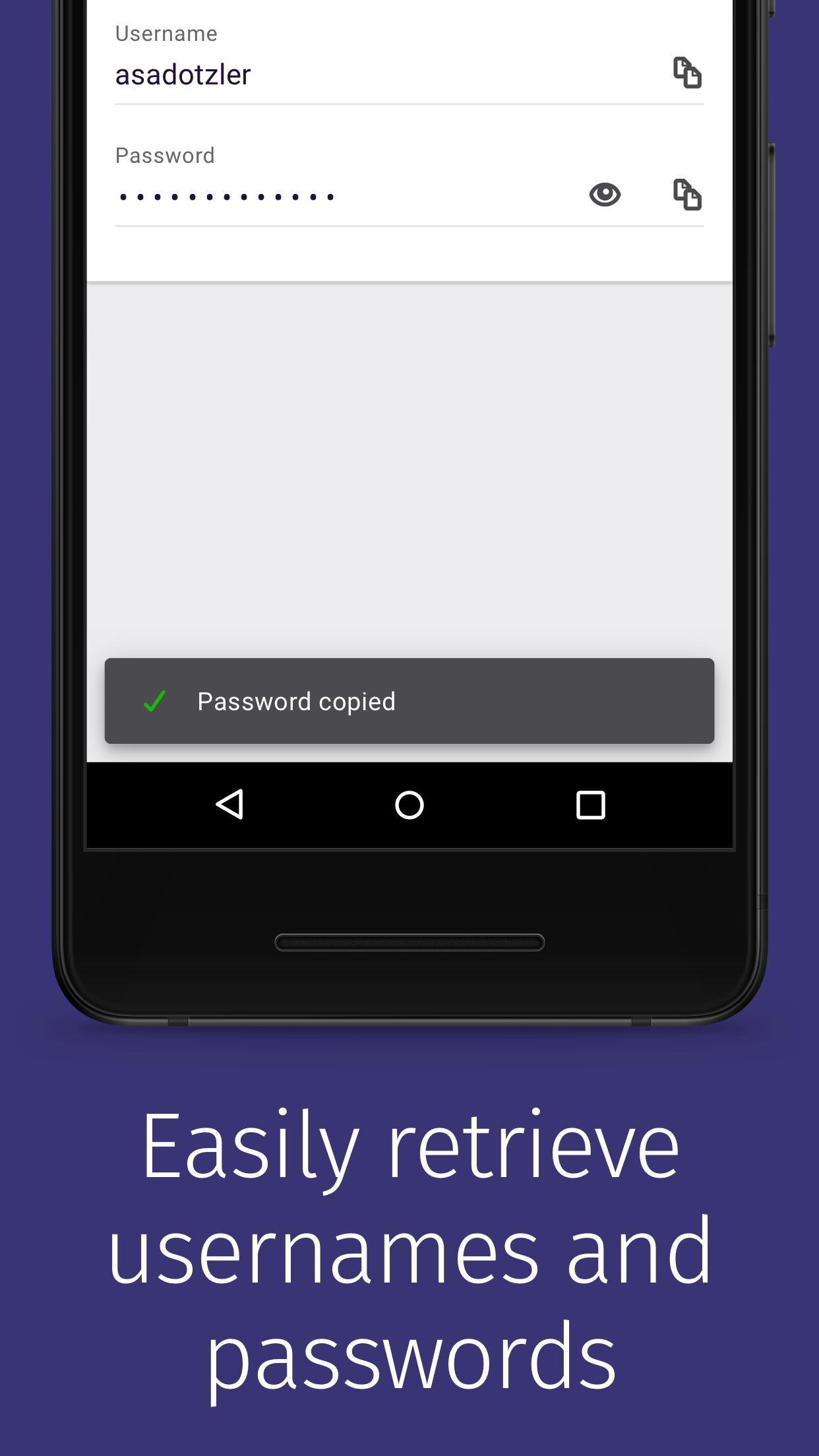 Firefox Lockwise позволяет пользователям учётных записей Firefox получать доступ к своим данным логина и пароля (которые мы называем “учётные данные”) на своих мобильных телефонах, вне любого браузера, с помощью Firefox Sync.