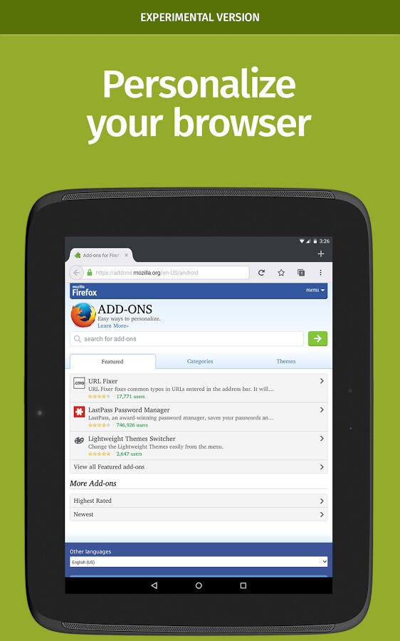 Смотрите наш список поддерживаемых устройств и минимальные системные требования www.mozilla.org/firefox/mobile/platforms/