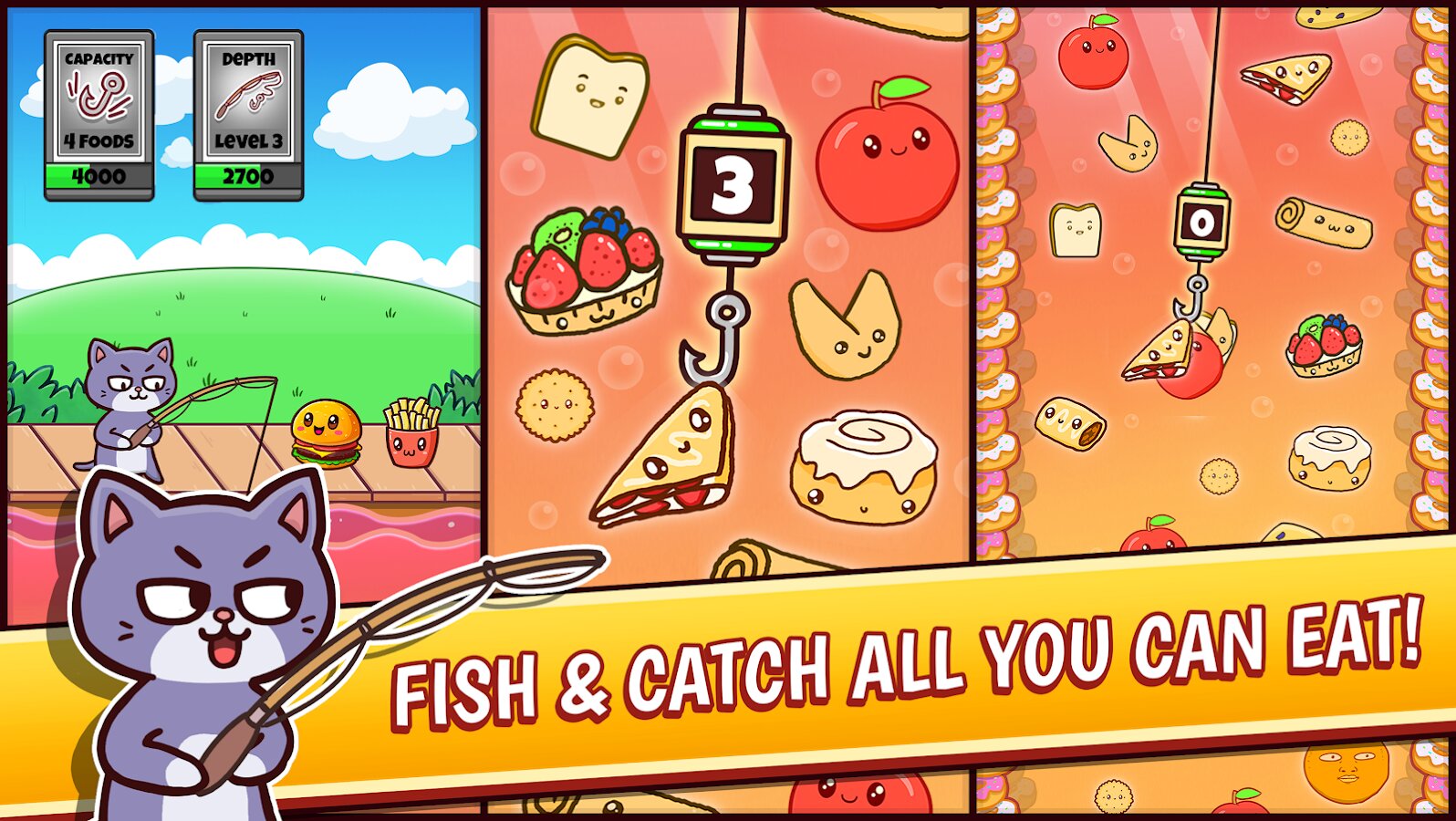 Игра Fishing Food погрузит в безумный мир. Помоги кошке поймать всю еду из океана в этой красочной игре о рыбалке. Из выловленной еды можно собирать вкусные блюда, которые умеют разговаривать. Чем глубже ты опустишься в океан, тем больше еды и сюрпризов сможешь открыть. Игровой процесс очень прост — проводи пальцем по экрану, чтобы найти еду. Заработанные в игре монеты можно использовать для улучшения рыболовных снастей. Это обеспечит улов более ценных продуктов.