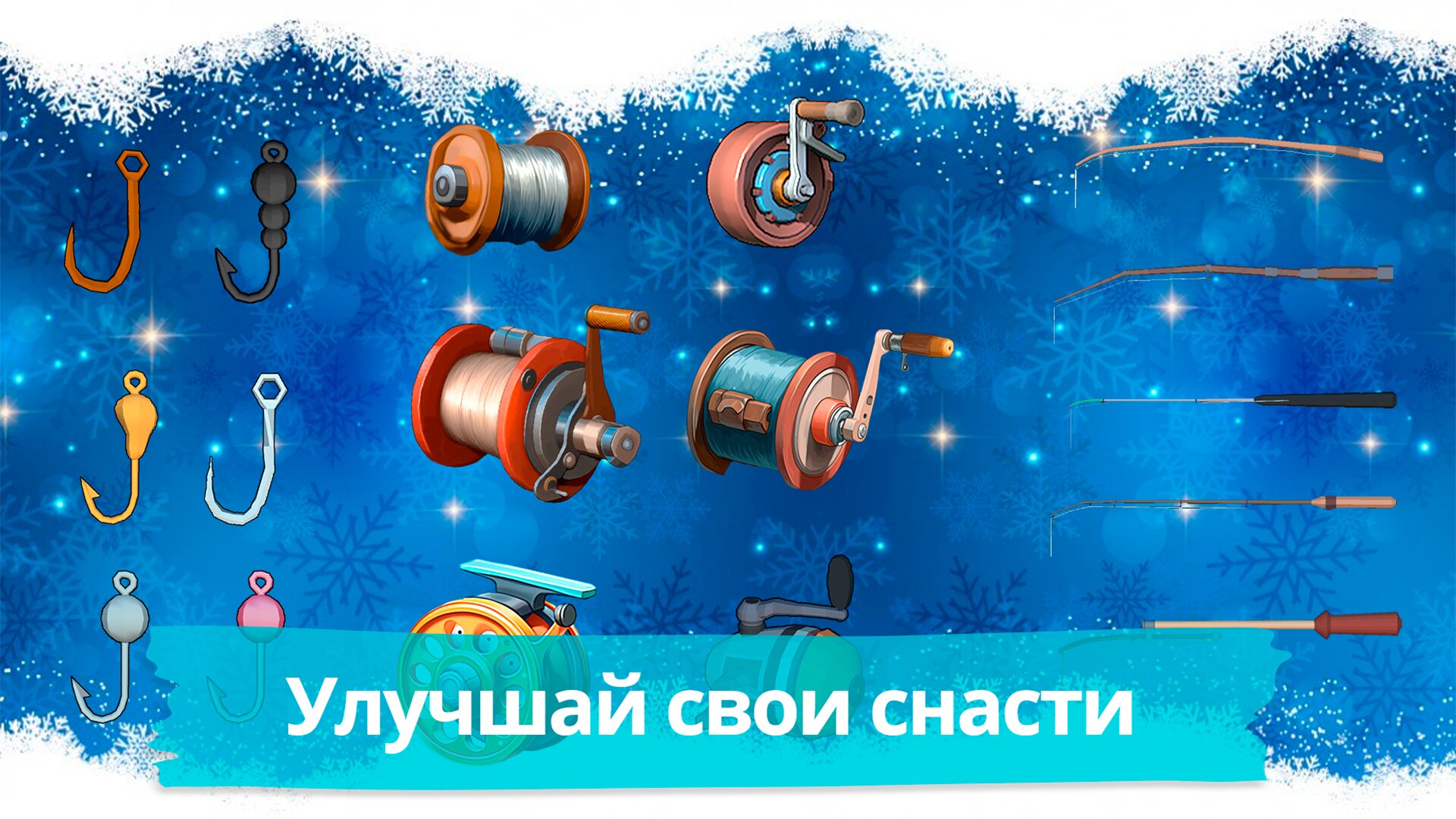 Реалистичная симуляция зимней рыбалки на замерзших озерах.