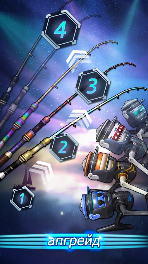 - Усильте разнообразные снасти (удилище, леска, катушка) и предметы, чтобы потягаться с еще большей рыбой.