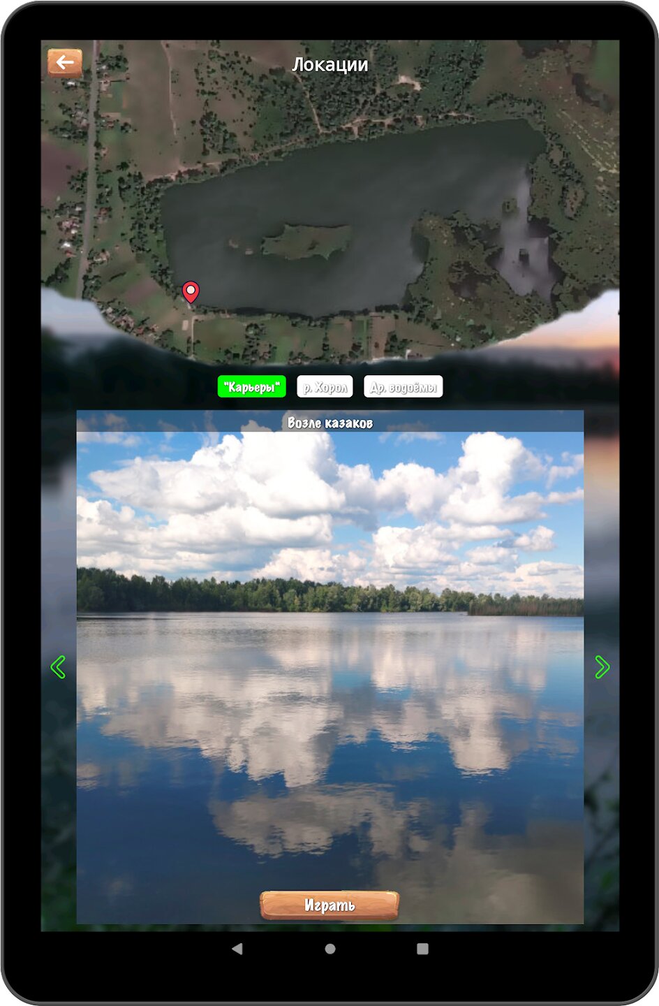 Отправляйтесь на берега рек и озер Полтавской области, где вас ждут более 20 уникальных локаций. Исследуйте каждую точку, находите лучшие места для клева и открывайте новые зоны, выполняя задания или зарабатывая игровую валюту. Реалистичная физика заброса и поведения рыбы делает каждый заброс спиннинга или поплавка максимально правдоподобным.