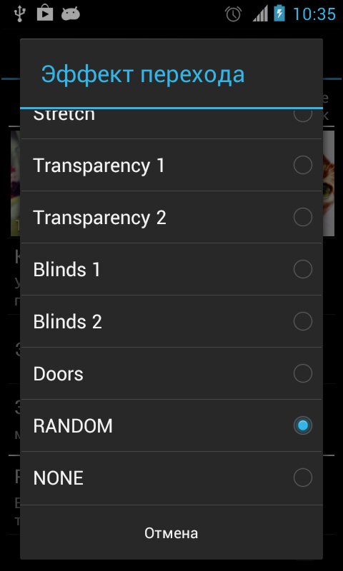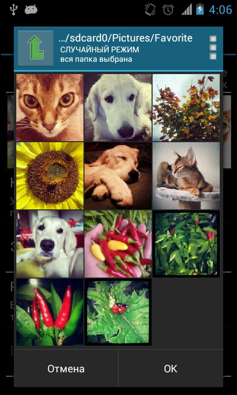- дважды коснуться экрана чтобы поменять картинку (если для экрана выбрана папка)