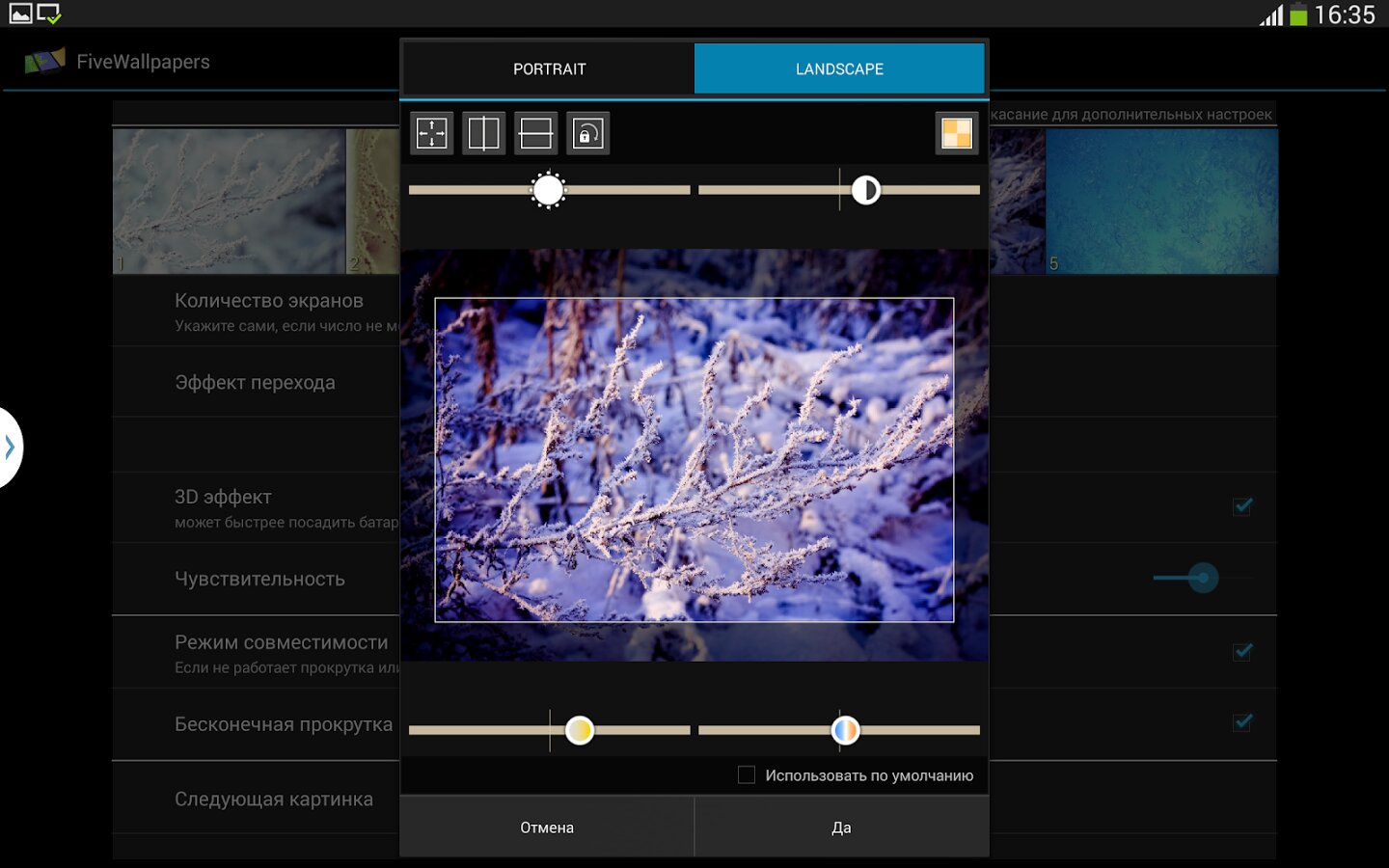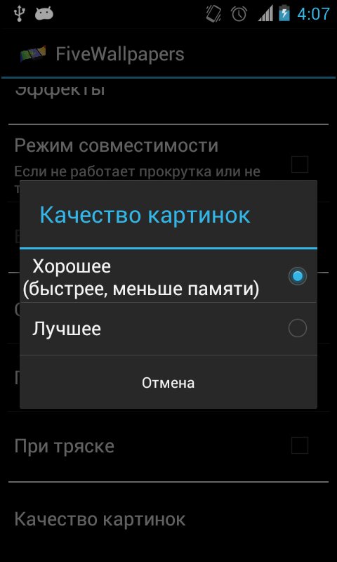 Попробуйте включить «Режим совместимости» если обои не прокручиваются или что-то еще работает не так.