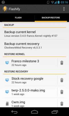 — Бекап/восстановление ядра и рекпвери, сохраненного в памяти телефона или в Dropbox