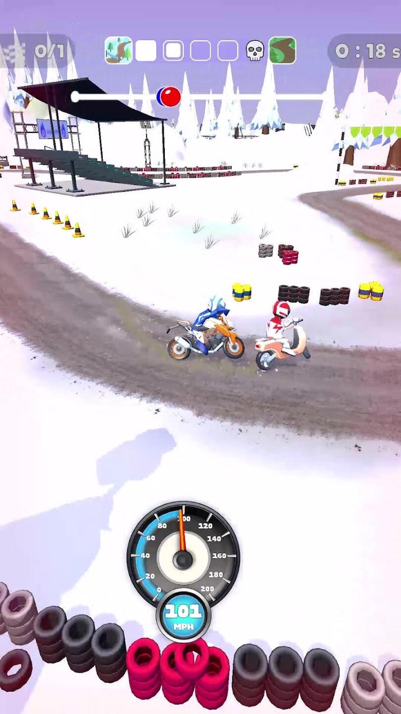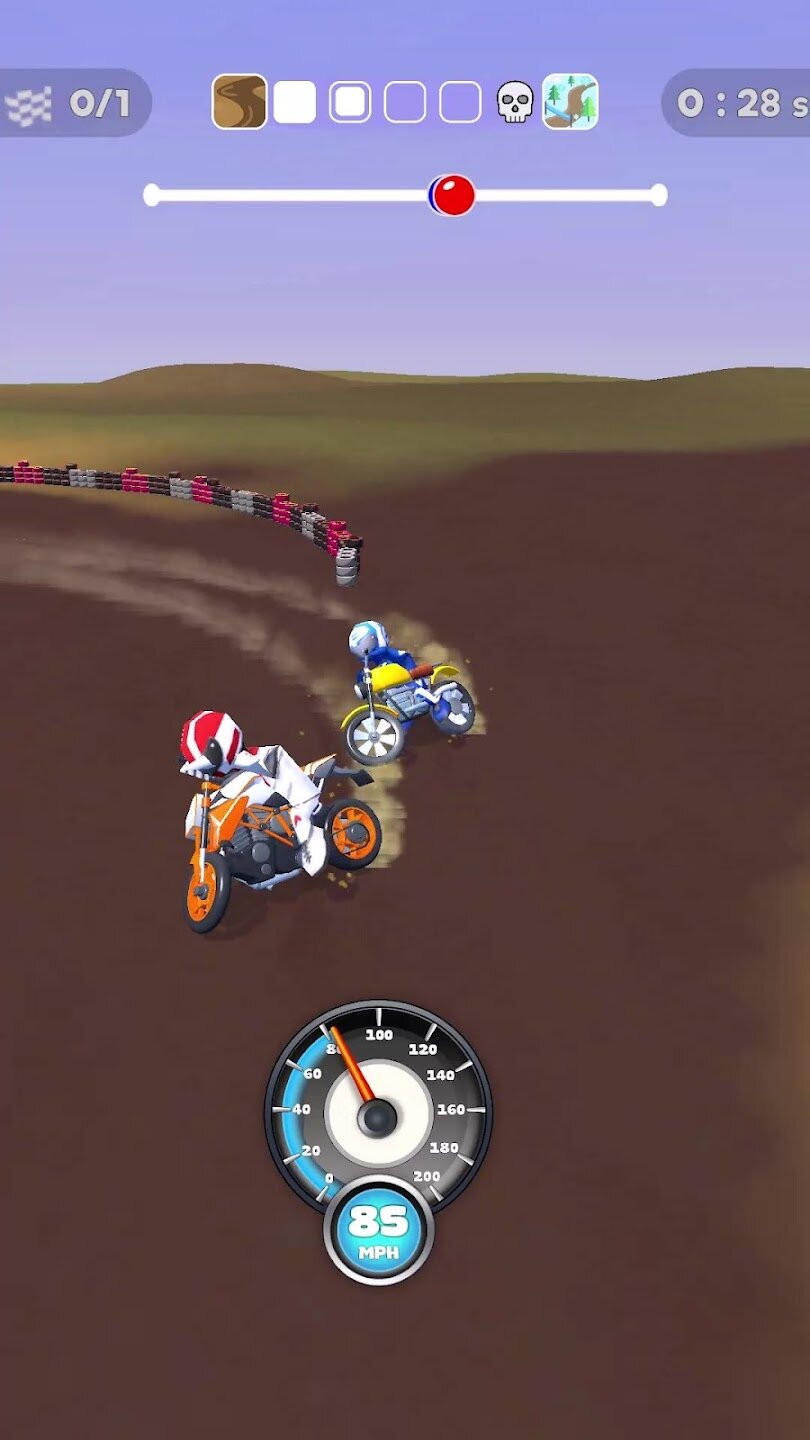 Flat Track Racing предлагает вам освоить искусство точного скольжения на двух колесах. Основной механизм игры прост: нажмите, чтобы ускорить мотоцикл, и отпустите в идеальный момент, чтобы начать потрясающий дрифт на крутых поворотах. Настоящее испытание — сохранить контроль и скорость, не вылетев за пределы трассы. Каждый успешный скольжение увеличивает ваш счет и приближает вас к открытию новых испытаний в этой гонке с высокими ставками.