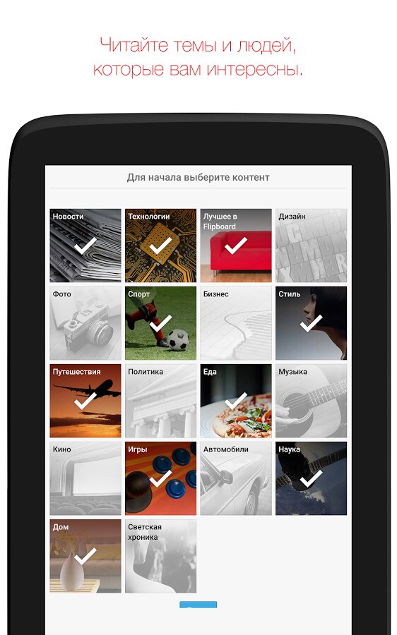 При таком разнообразии тем и интересных людей, материалы которых можно читать, каждый найдет что-то для себя: от фотографий до новостей, от путешествий до технологий, от дизайна до кулинарии. Скачайте приложение, отметьте свои интересы, и Flipboard создаст журнал по каждому из них.